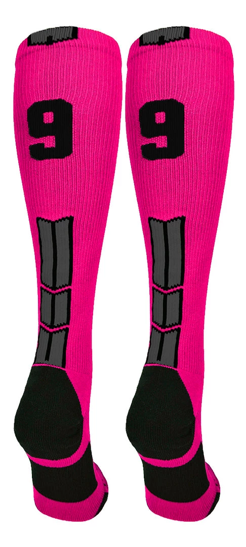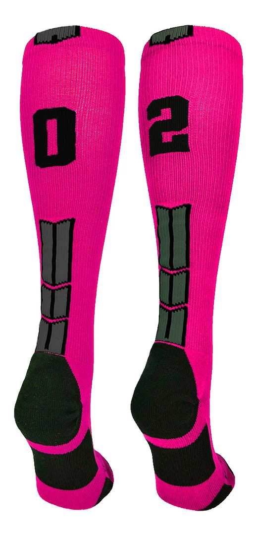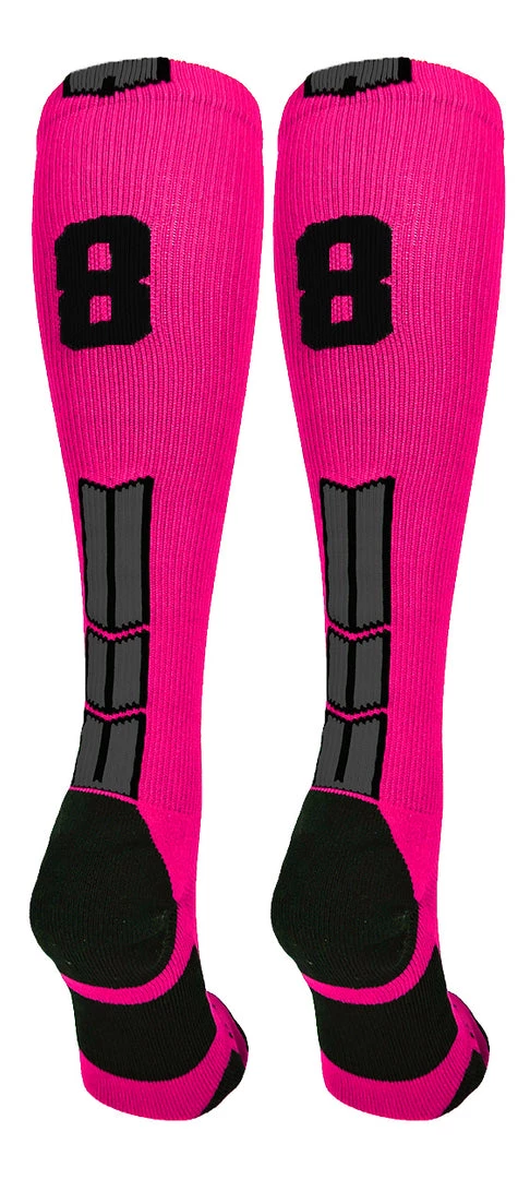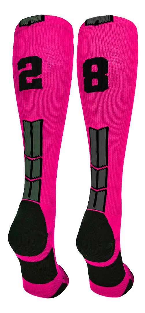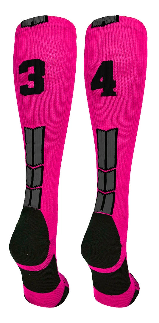 MadSportsStuff Baseball Socks Neon Pink And Black Player ID Custom Number Over The Calf Socks For Softball Baseball Football Boys And Girls