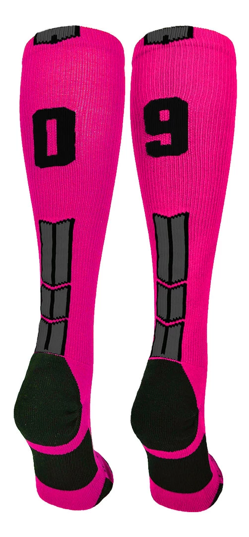 MadSportsStuff Baseball Socks Neon Pink And Black Player ID Custom Number Over The Calf Socks For Softball Baseball Football Boys And Girls