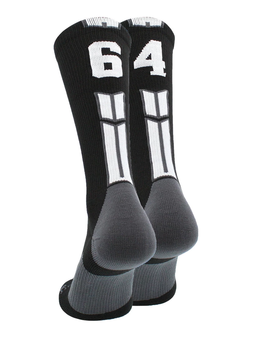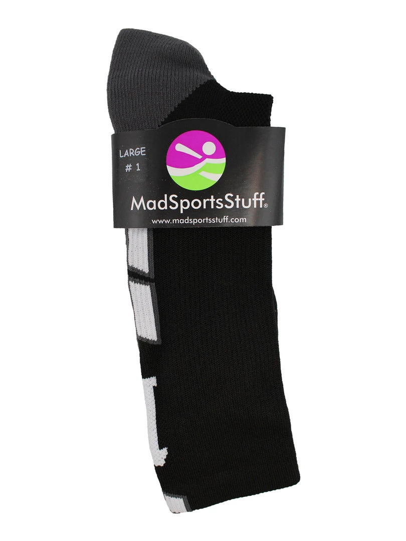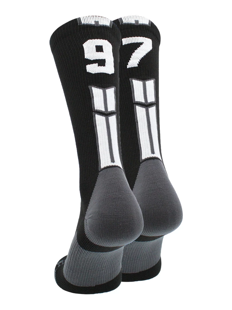 NUMBER SOCKS SOLD AS A PAIR!! MadSportsStuff Player Id Jersey Number Socks Crew Length Black and White. Select your own personalized jersey number. High performance athletic number socks for all team sports and elite athletes. These jersey number socks are ideal for boys and girls and are great for basketball, football, volleyball, lacrosse and more!