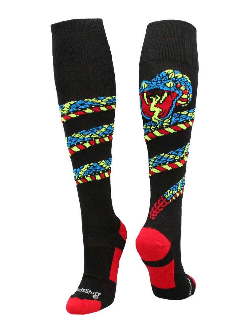 MadSportsStuff Snake Over the Calf Athletic Socks. High performance athletic socks for all team sports and elite athletes. These Snake Socks are ideal for soccer, softball, field hockey, lacrosse, volleyball, wrestling, football, basketball, cheer, and more!