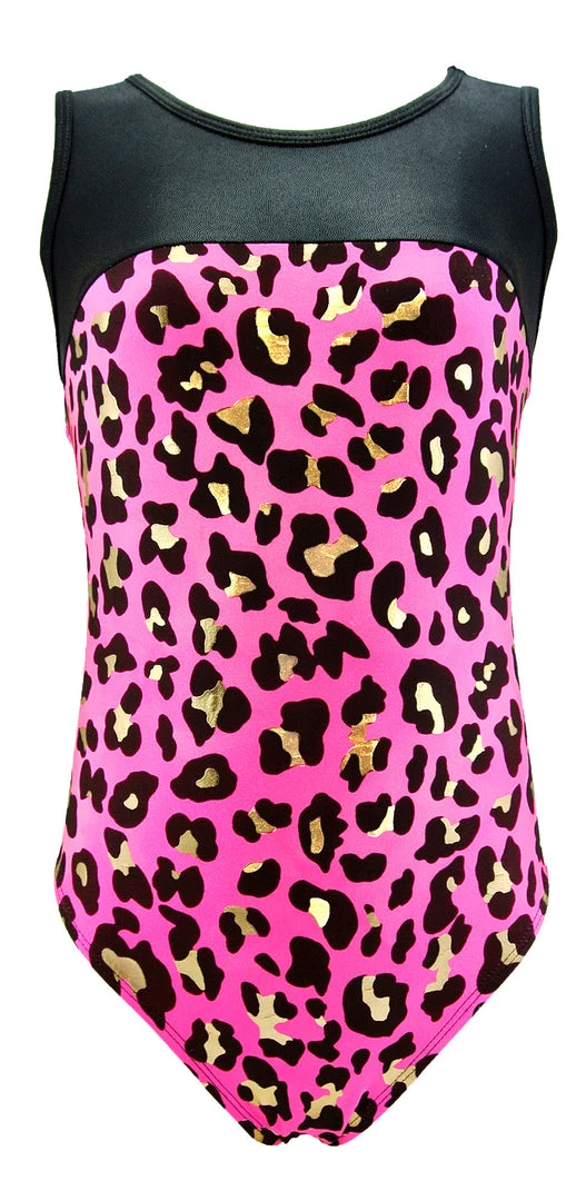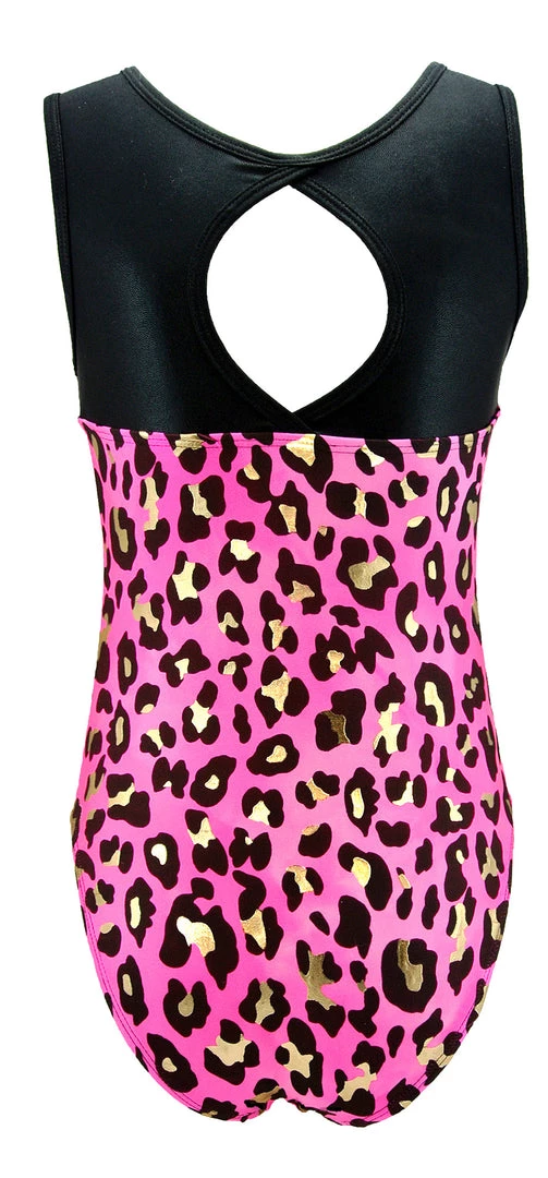 MadSportsStuff Keyhole Style Pink/Gold Leopard Girls Gymnastics Leotard Leotards