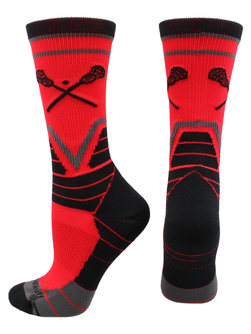 MadSportsStuff Lacrosse Victory Socks with Lacrosse Sticks Athletic Crew Socks. High performance athletic socks for all team sports and elite athletes. For boys or girls, great for teams and gifts!