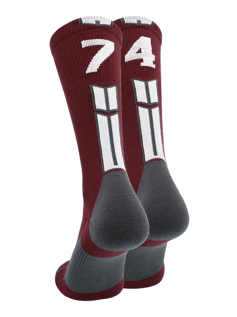 MadSportsStuff Maroon Player ID Custom Number Crew Socks For Basketball Lacrosse Volleyball Boys And Girls Volleyball Socks