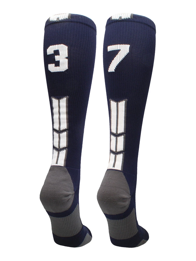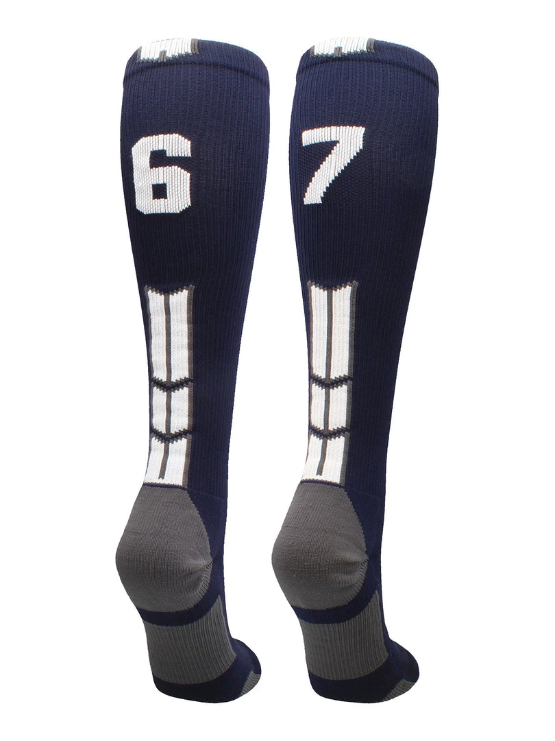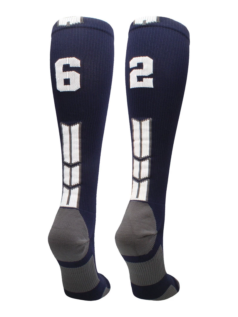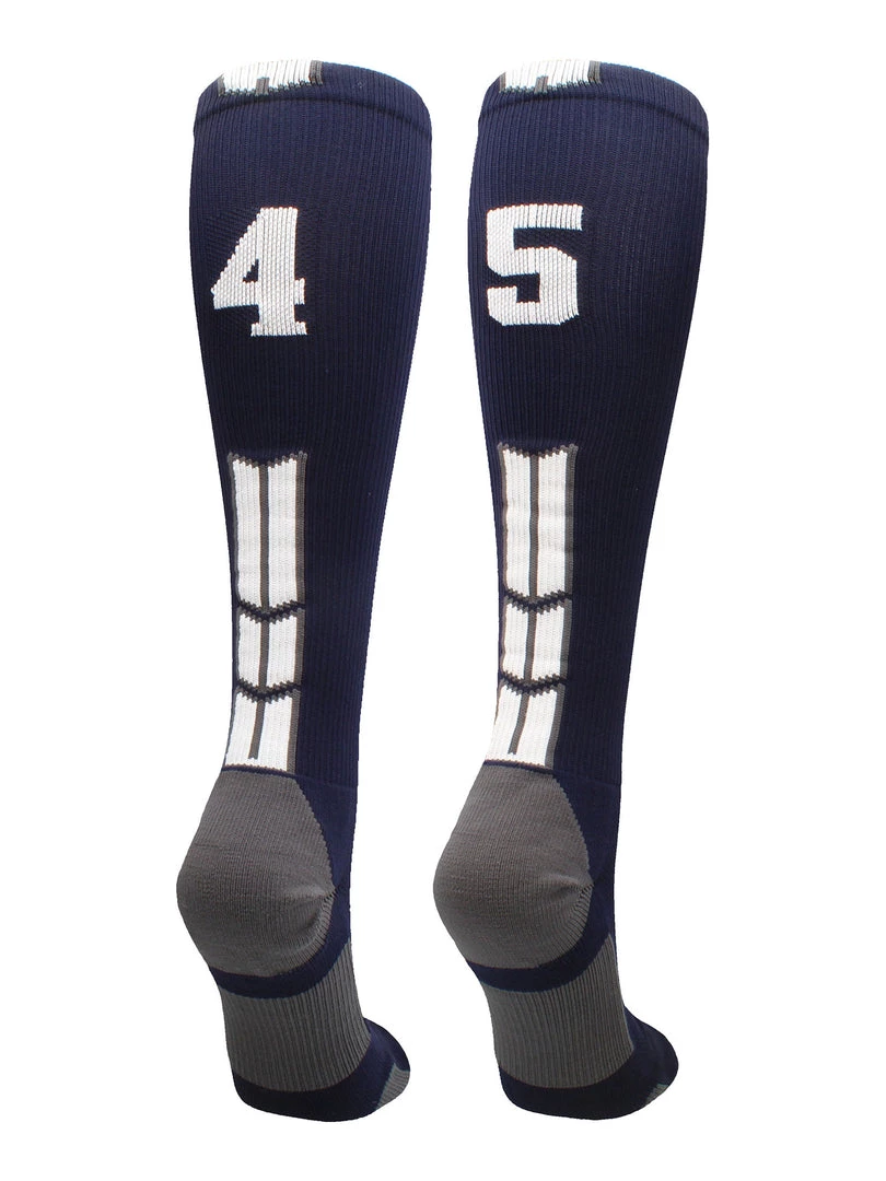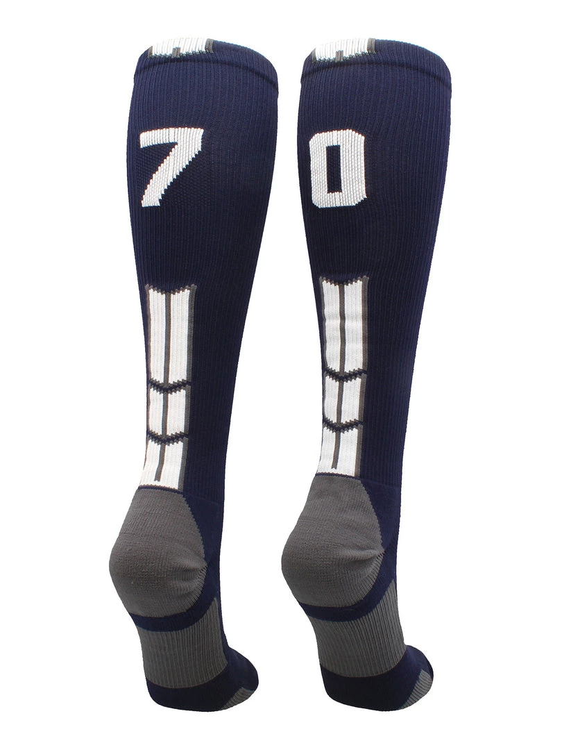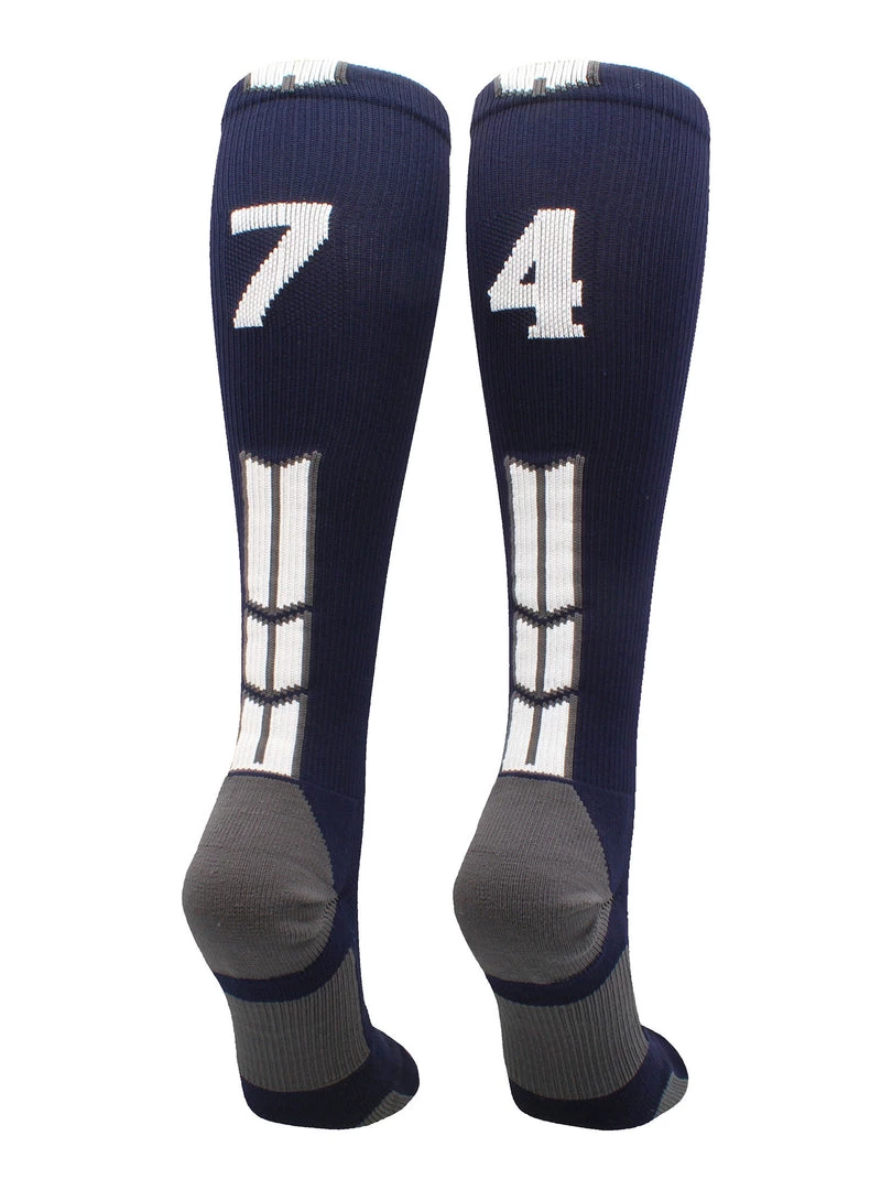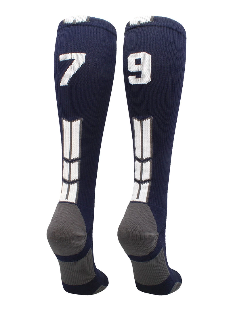 MadSportsStuff Navy Player ID Custom Number Over The Calf Socks For Softball Baseball Football Boys And Girls