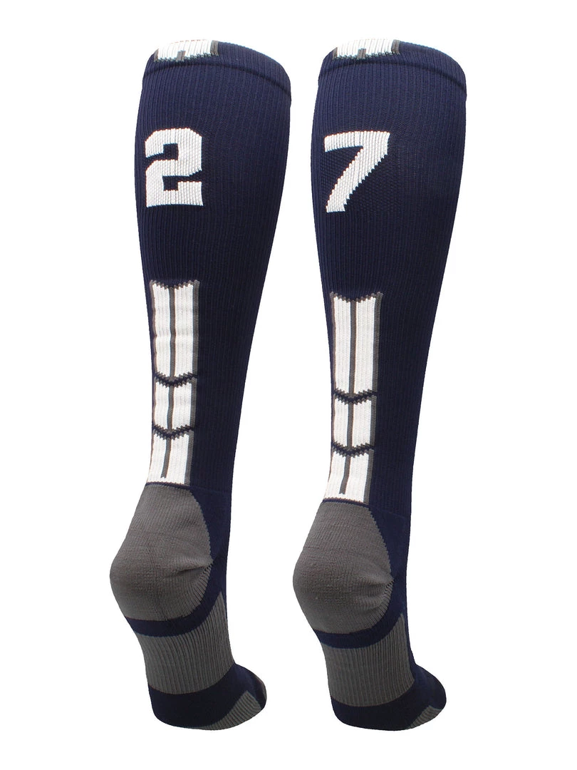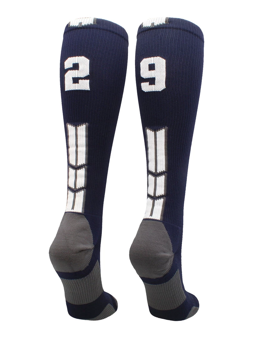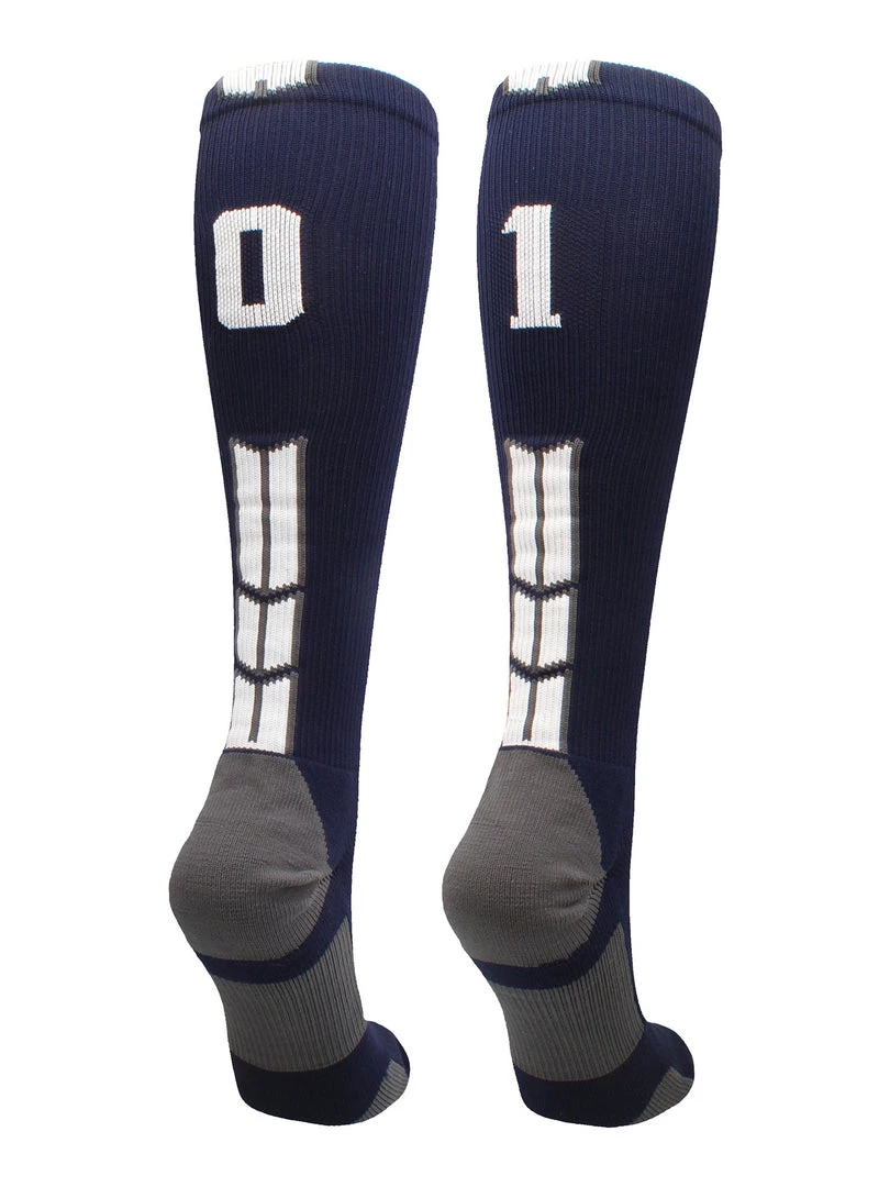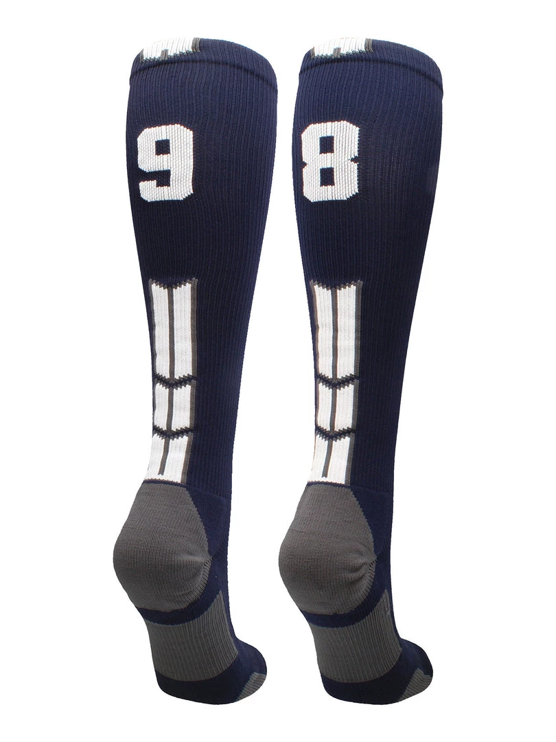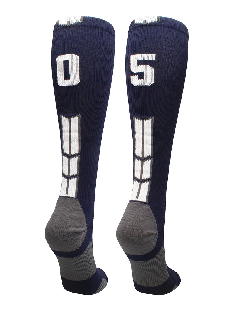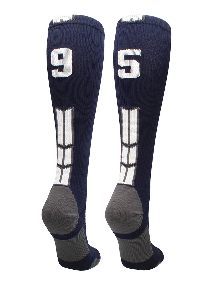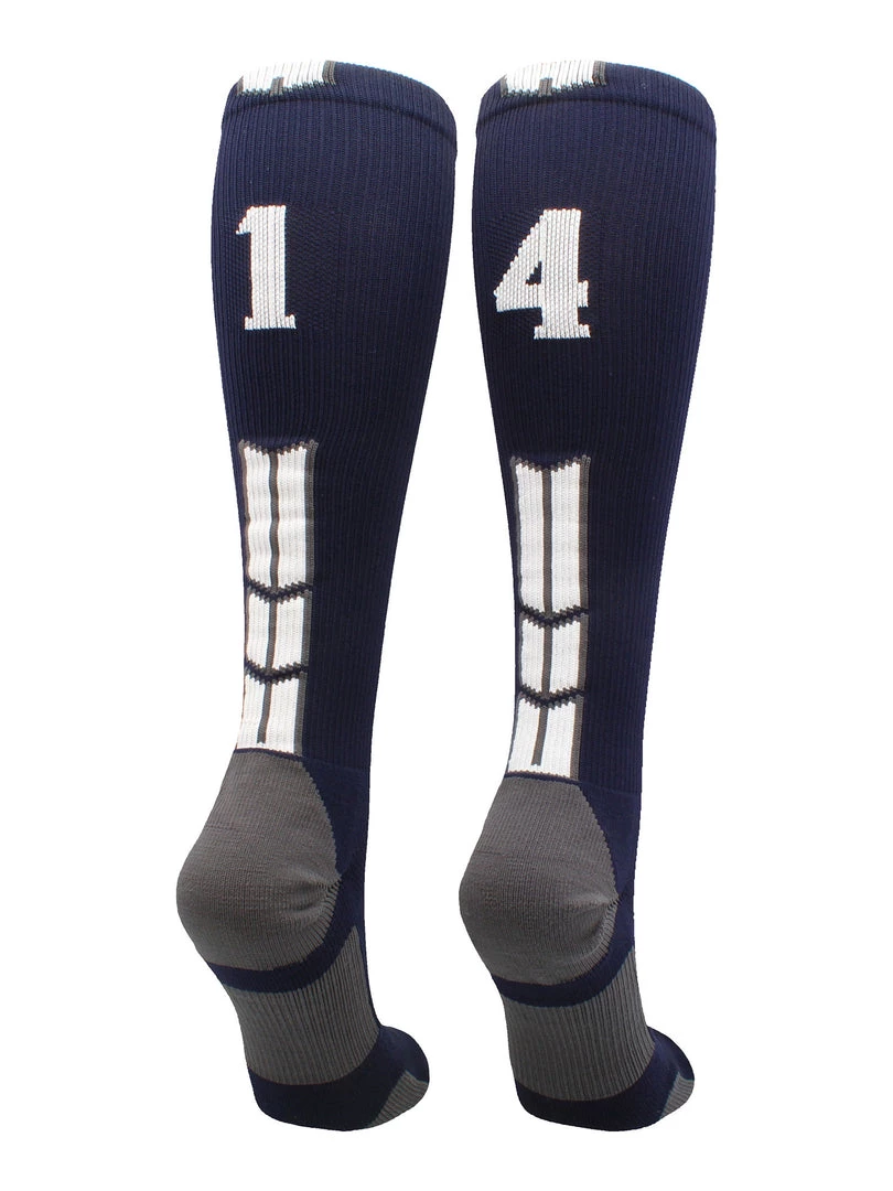 MadSportsStuff Navy Player ID Custom Number Over The Calf Socks For Softball Baseball Football Boys And Girls