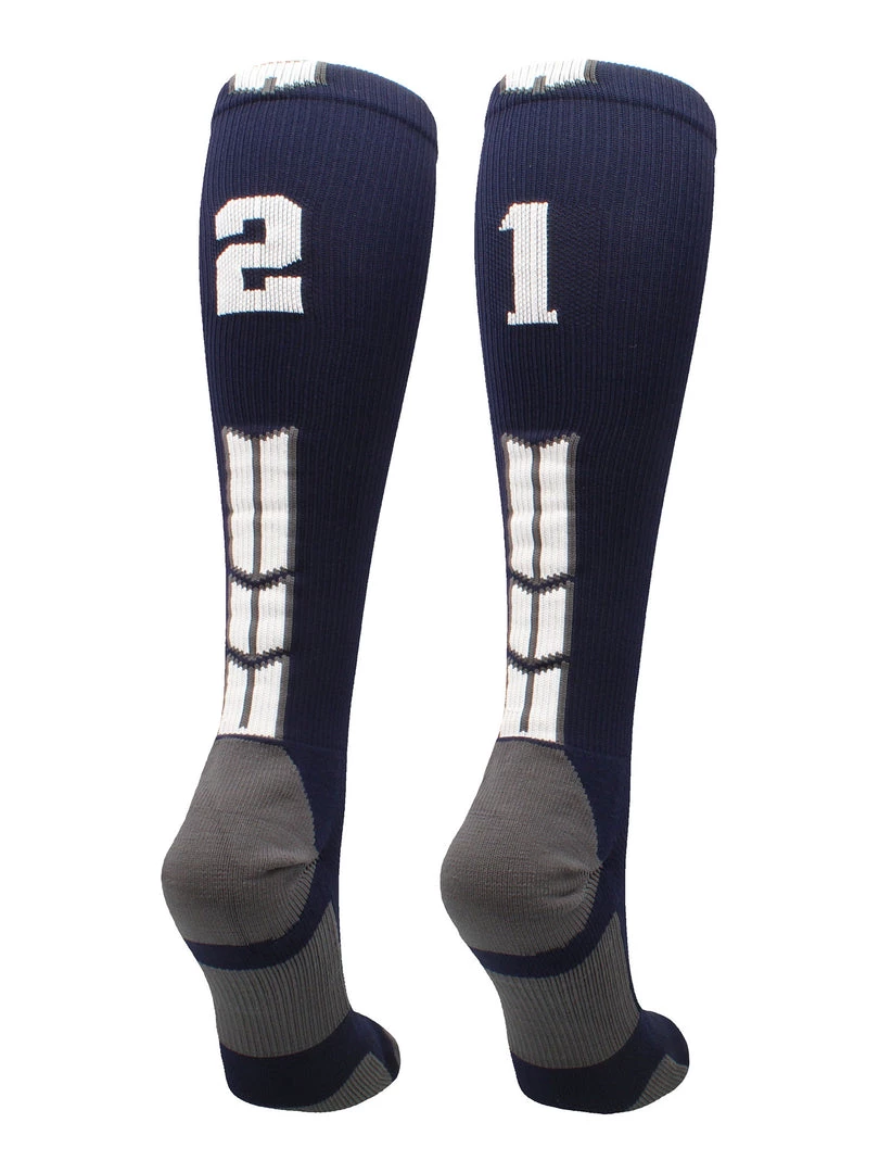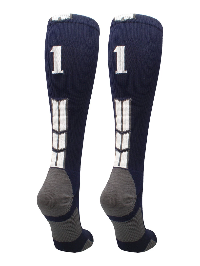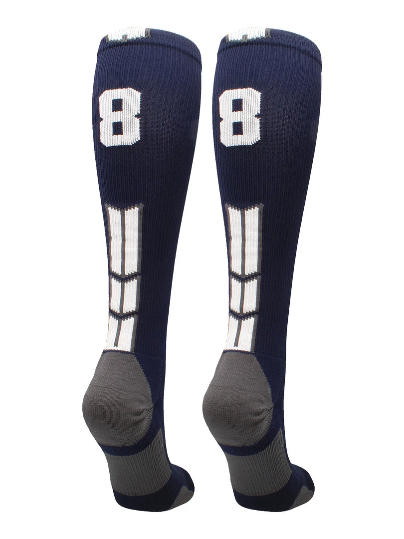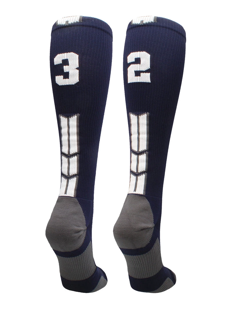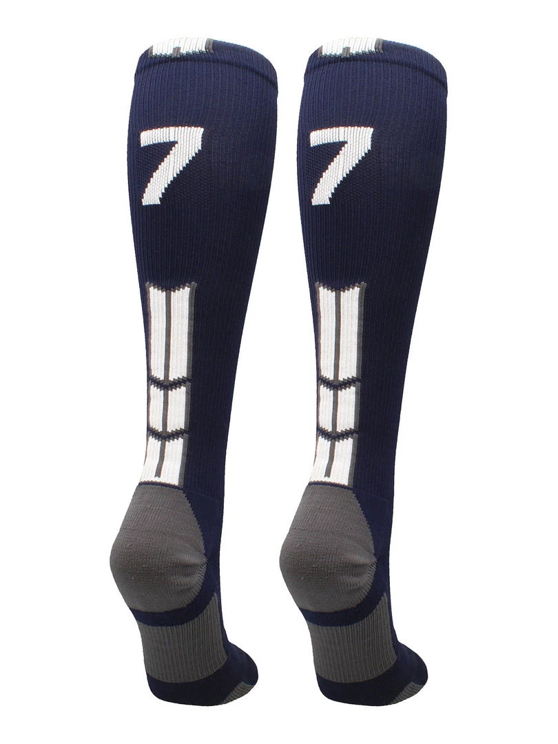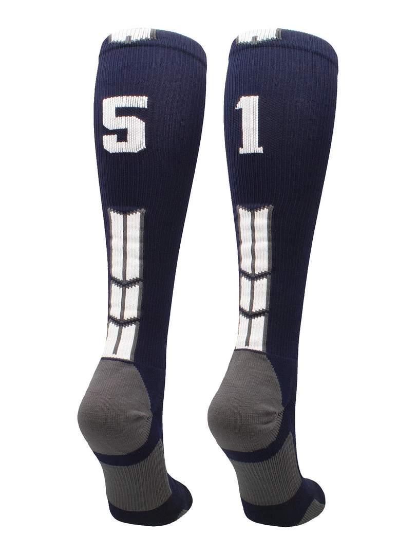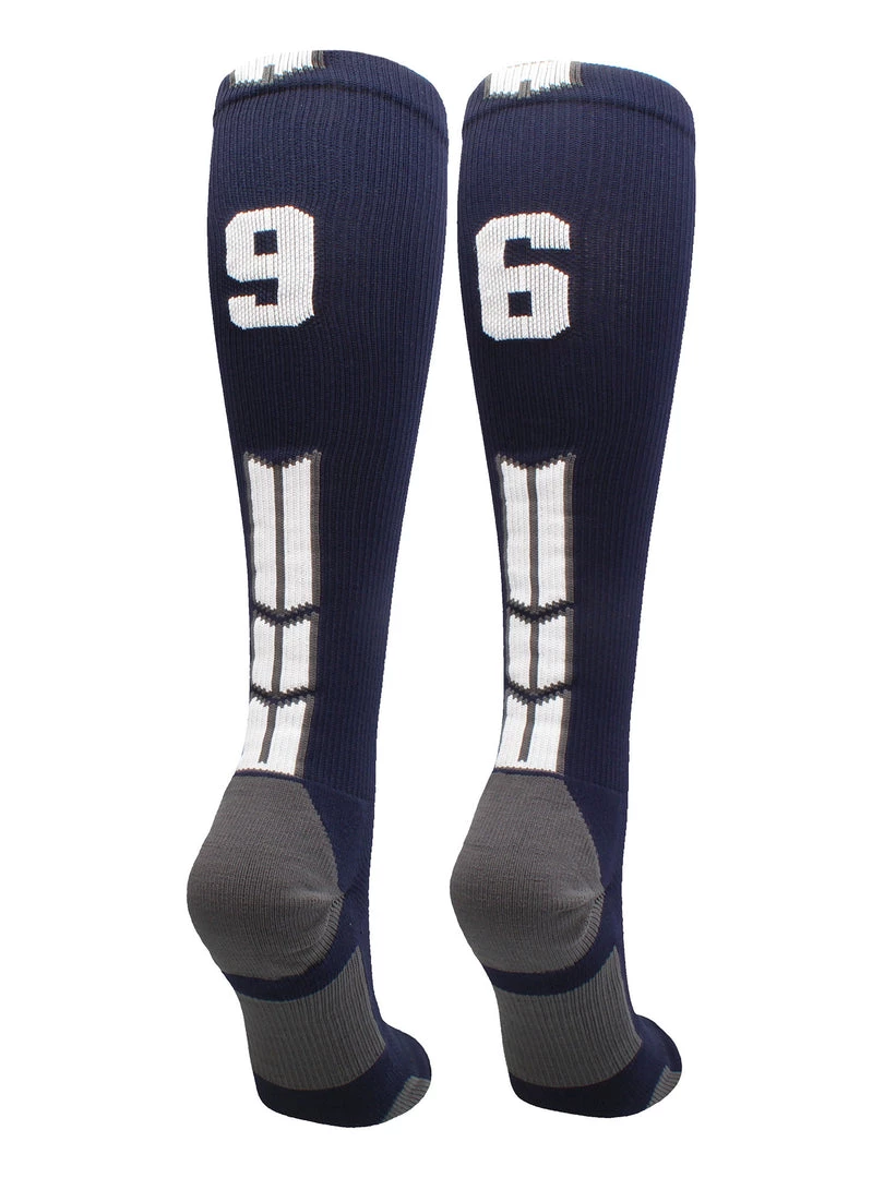 MadSportsStuff Navy Player ID Custom Number Over The Calf Socks For Softball Baseball Football Boys And Girls