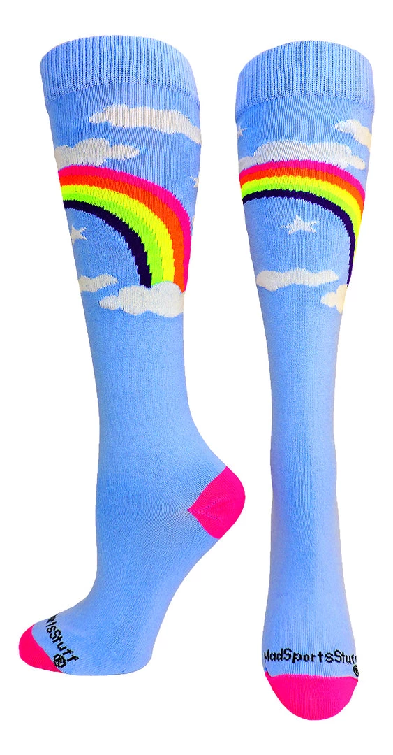 MadSportsStuff Neon Rainbow Clouds Over the Calf Athletic Socks. High performance athletic socks for all team sports and elite athletes.