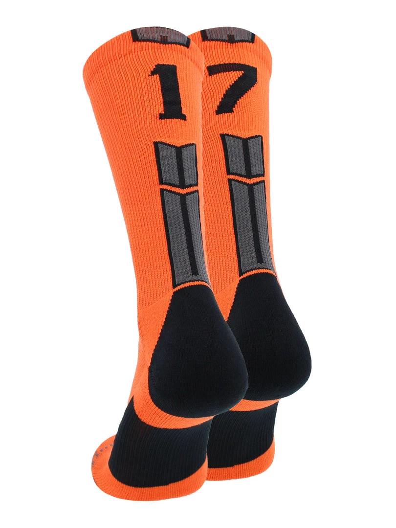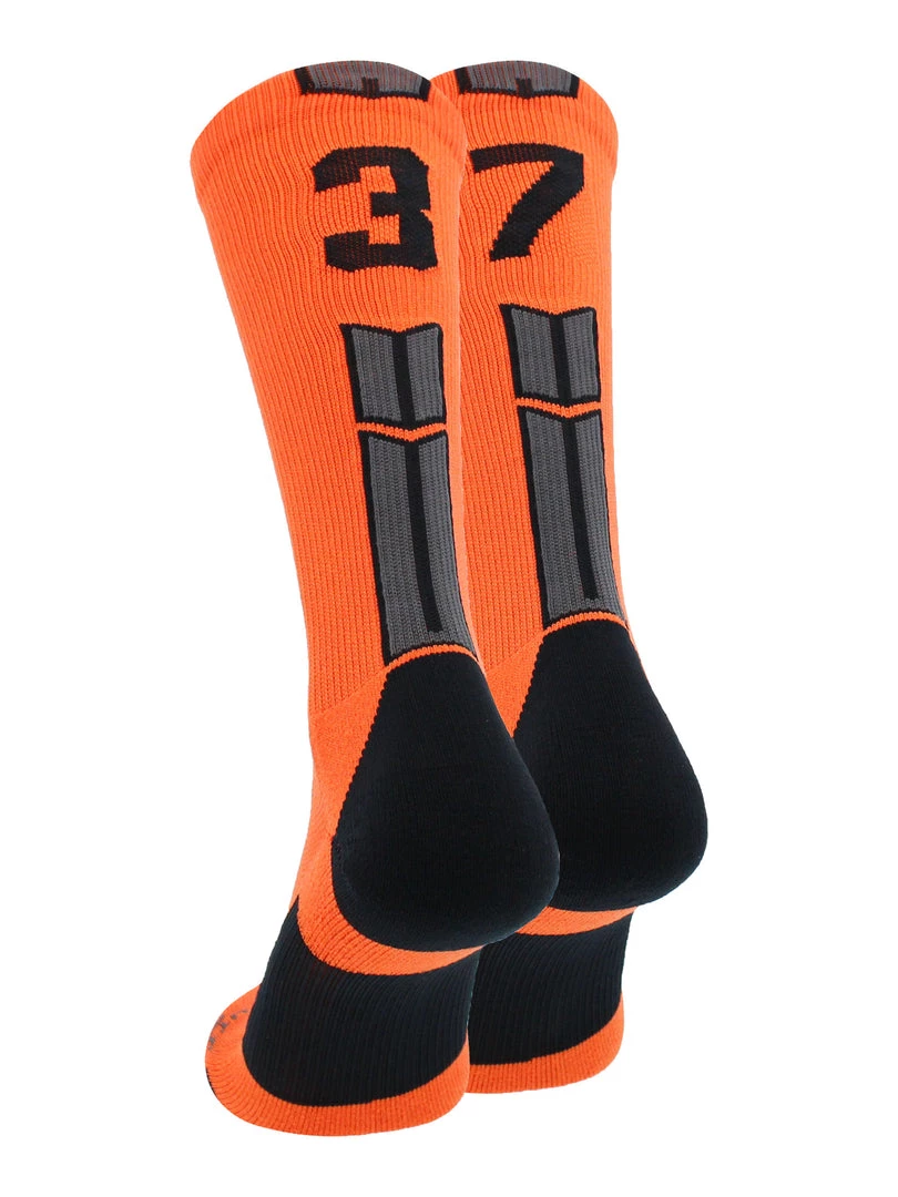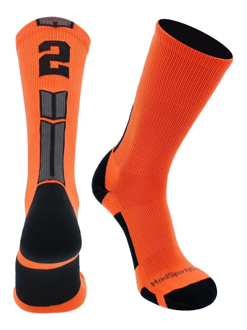 MadSportsStuff Orange And Black Player ID Custom Number Crew Socks For Basketball Lacrosse Volleyball Boys And Girls