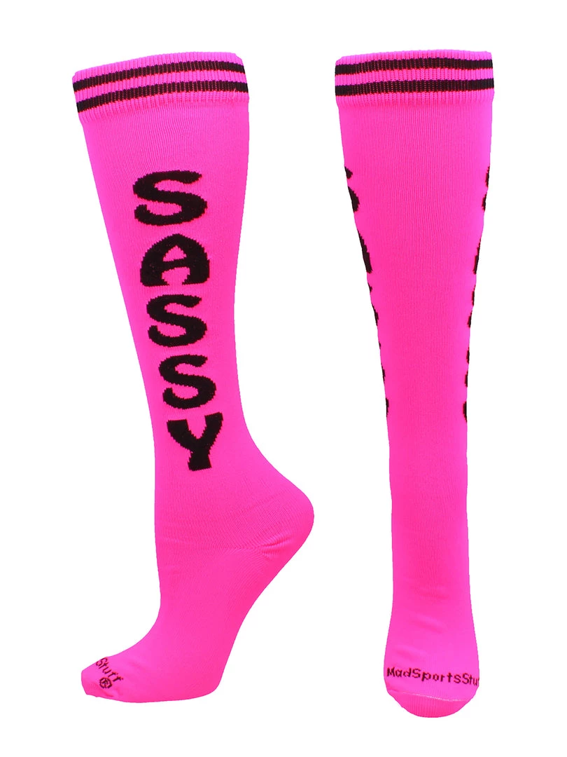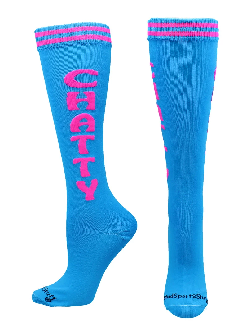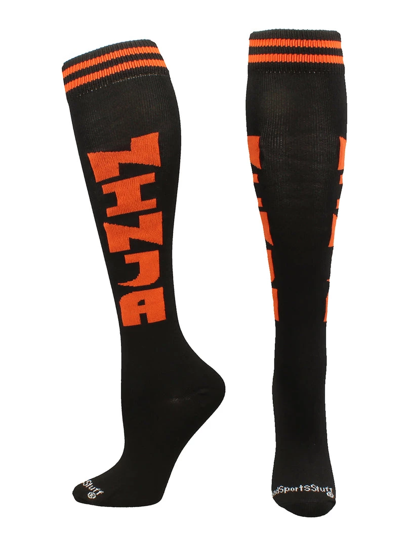 MadSportsStuff Personality Word Socks Over the Calf Length Athletic Socks. High performance athletic socks for all team sports and elite athletes. For boys or girls, teams and gifts. Ideal for softball, baseball, lacrosse, basketball, wrestling, soccer, football, kickball and more!