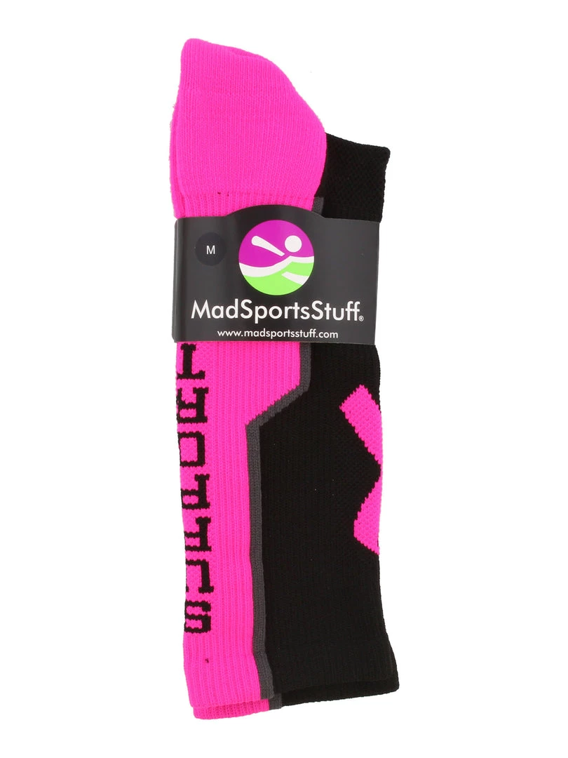 MadSportsStuff Pink Ribbon Breast Cancer Awareness Support Athletic Crew Socks. High performance athletic socks for all team sports and elite athletes. The socks are ideal for football, basketball, lacrosse, volleyball and more!