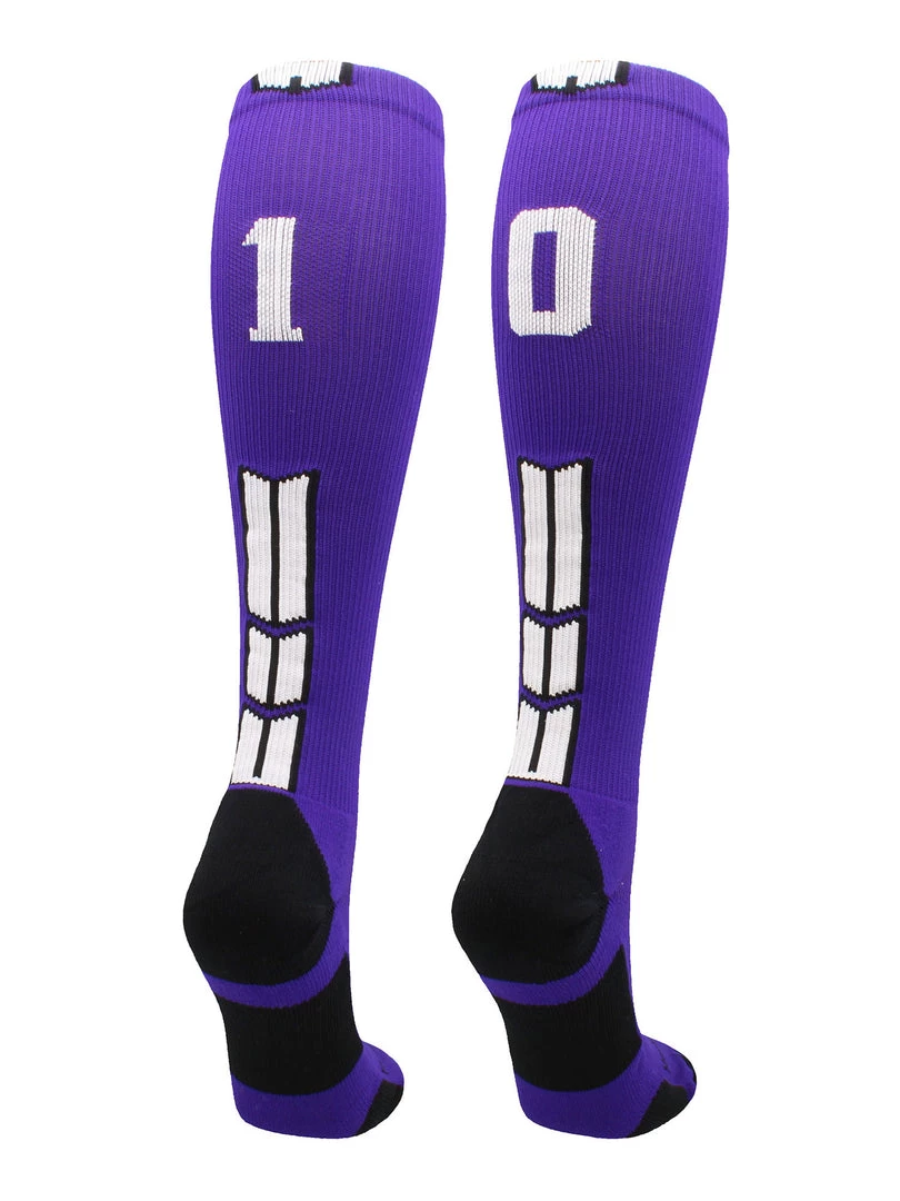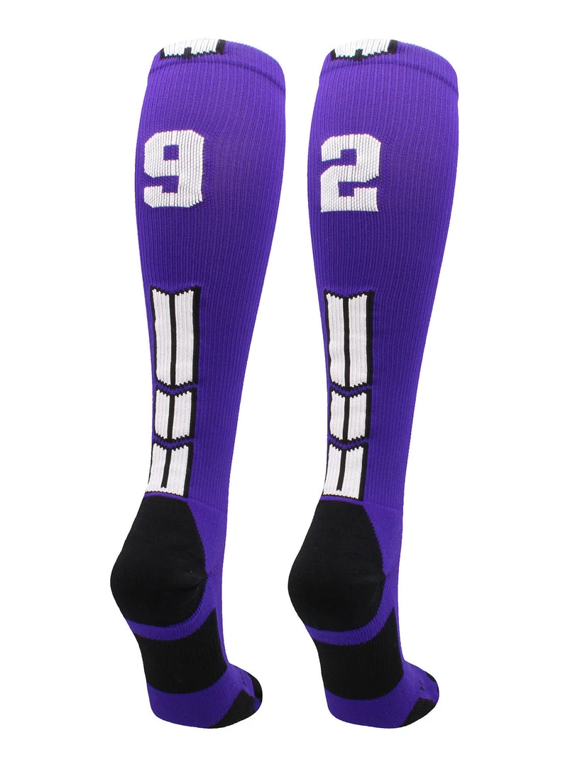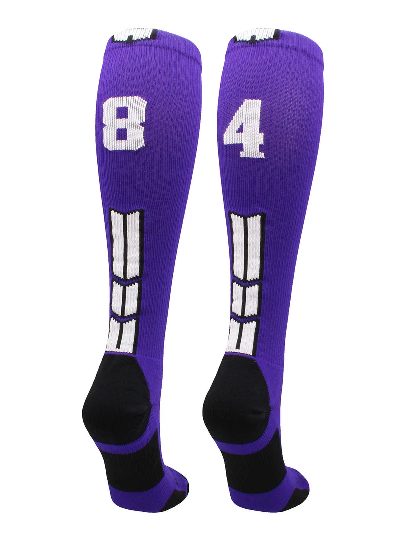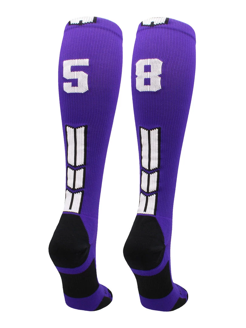 MadSportsStuff Purple Player ID Custom Number Over The Calf Socks For Softball Baseball Football Boys And Girls Softball Socks