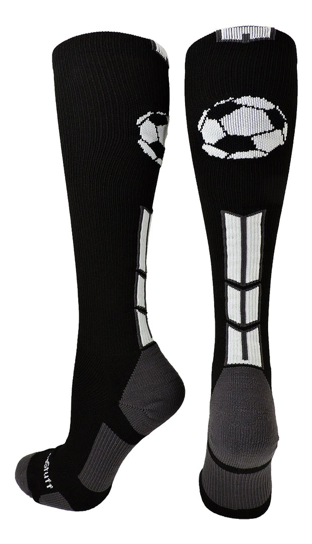 MadSportsStuff Soccer Ball Logo Over the Calf Socks. High performance athletic socks for all team sports and elite athletes. Great for boys or girls, teams and gifts.