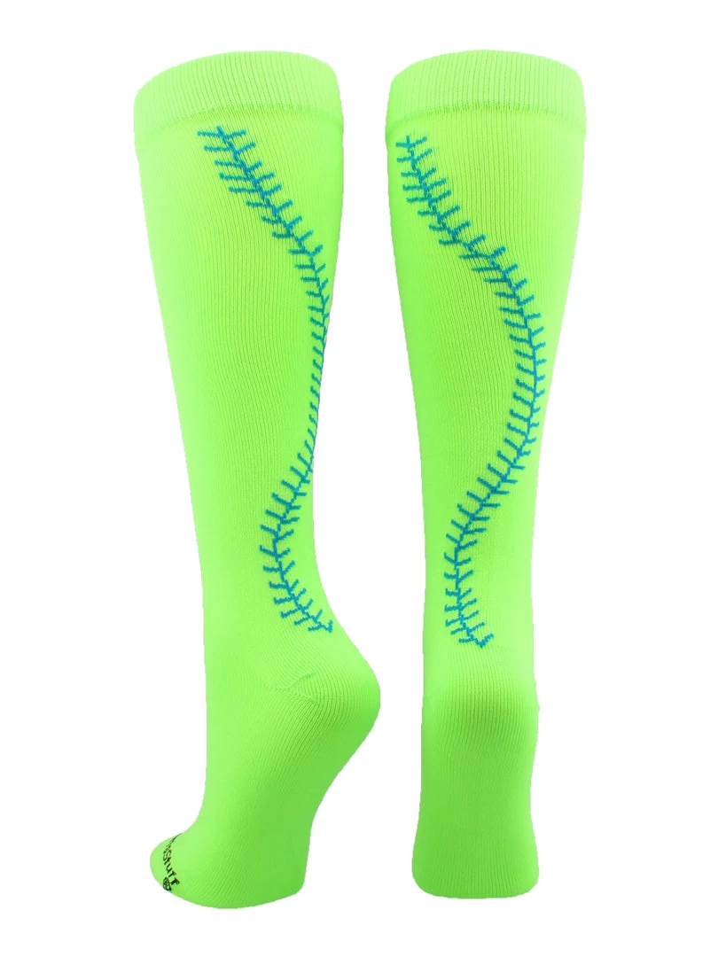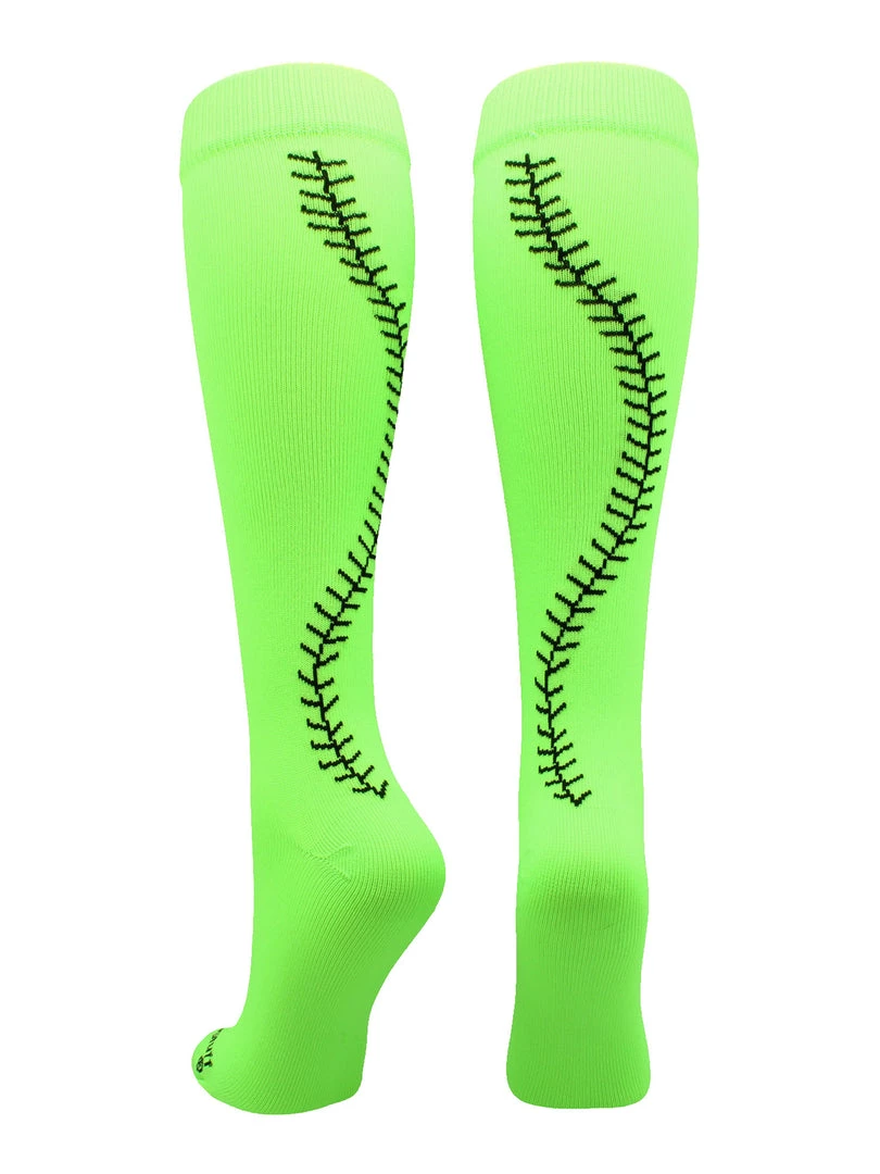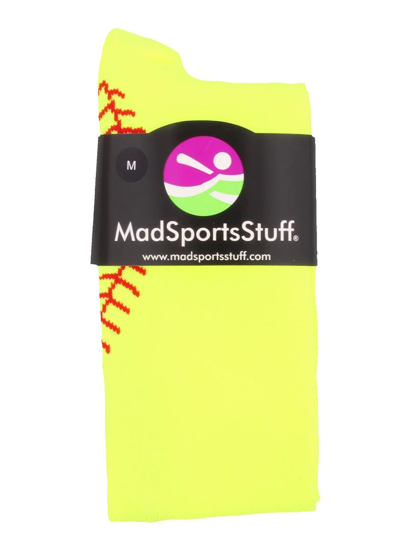 MadSportsStuff Softball Socks with Stitches over the calf length. High performance athletic softball socks for t-ball, softball or fastpitch.