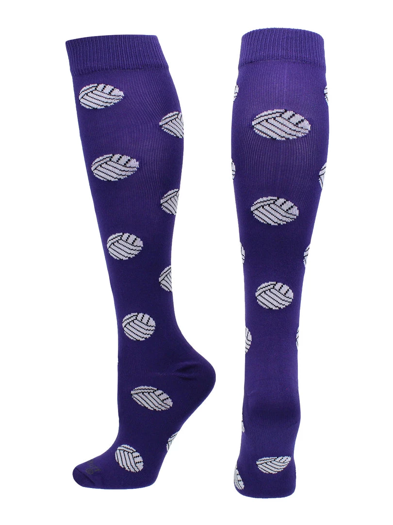 MadSportsStuff Volleyball Socks with Volleyball Print in an over the calf length. High performance athletic socks for all team sports and elite athletes. Fiber Contents: 75% Polypropylene, 13% Nylon, 9% Elastic, 3% Lycra Spandex.