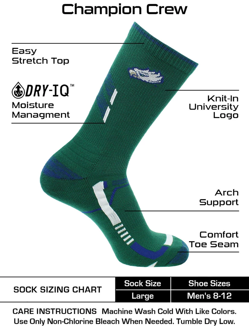 Wear your loud and proud school pride on your feet and be ready for even the most strenuous activities. Perfect with sneakers and slides, these socks let you be athletic ready while you support your school. Offering comfort, breathability, performance, and durability these high quality Florida Gulf Coast University Eagles socks are an ideal gift for Father’s Day, birthdays, stocking stuffers or going back to school. Made of 94% Polyester, 4% Rubber, 2% Spandex. Go Eagles!