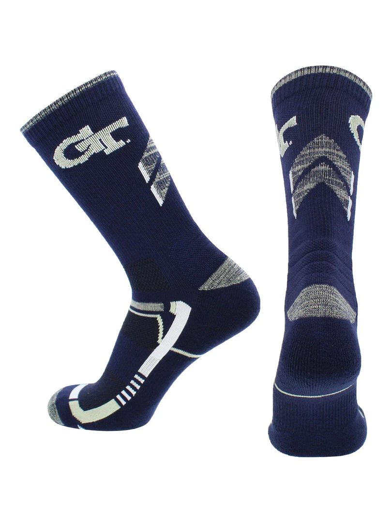 - COMFORT AND BREATHABILITY: These premium quality Georgia Tech socks provide soft comfort. Mesh panel ventillation above the foot allows for proper air flow. Keeping the feet dry. Moisture management technology pulls away moisture from skin.