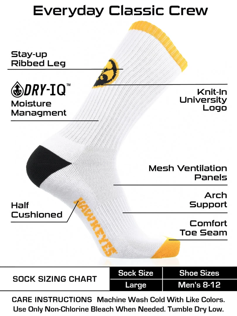 - SOFT AND DRY: These premium quality Iowa Socks provide soft, but durable comfort. Moisture management technology pulls away moisture from skin, while keeping your feet dry.