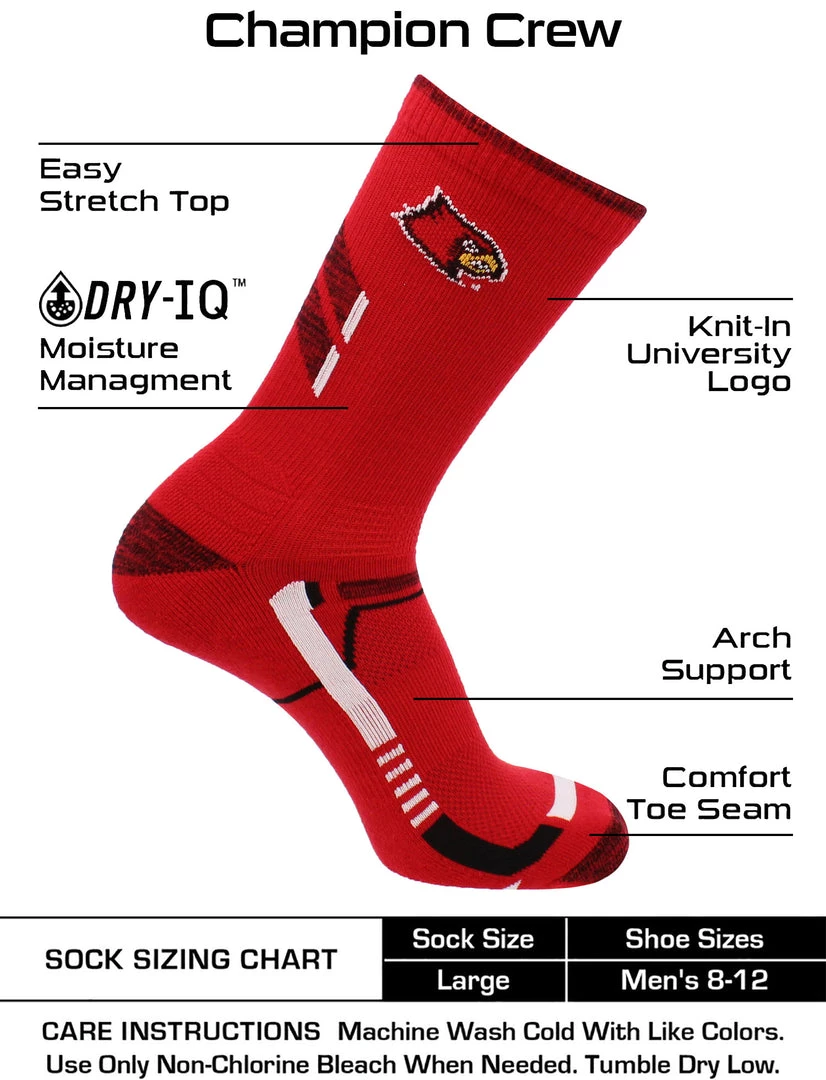 Wear your loud and proud school pride on your feet and be ready for even the most strenuous activities. Perfect with sneakers and slides, these socks let you be athletic ready while you support your school. Offering comfort, breathability, performance, and durability these high quality University of Louisville Cardinals socks are an ideal gift for Father’s Day, birthdays, stocking stuffers or going back to school. Made of 94% Polyester, 4% Rubber, 2% Spandex. Go Cardinals!