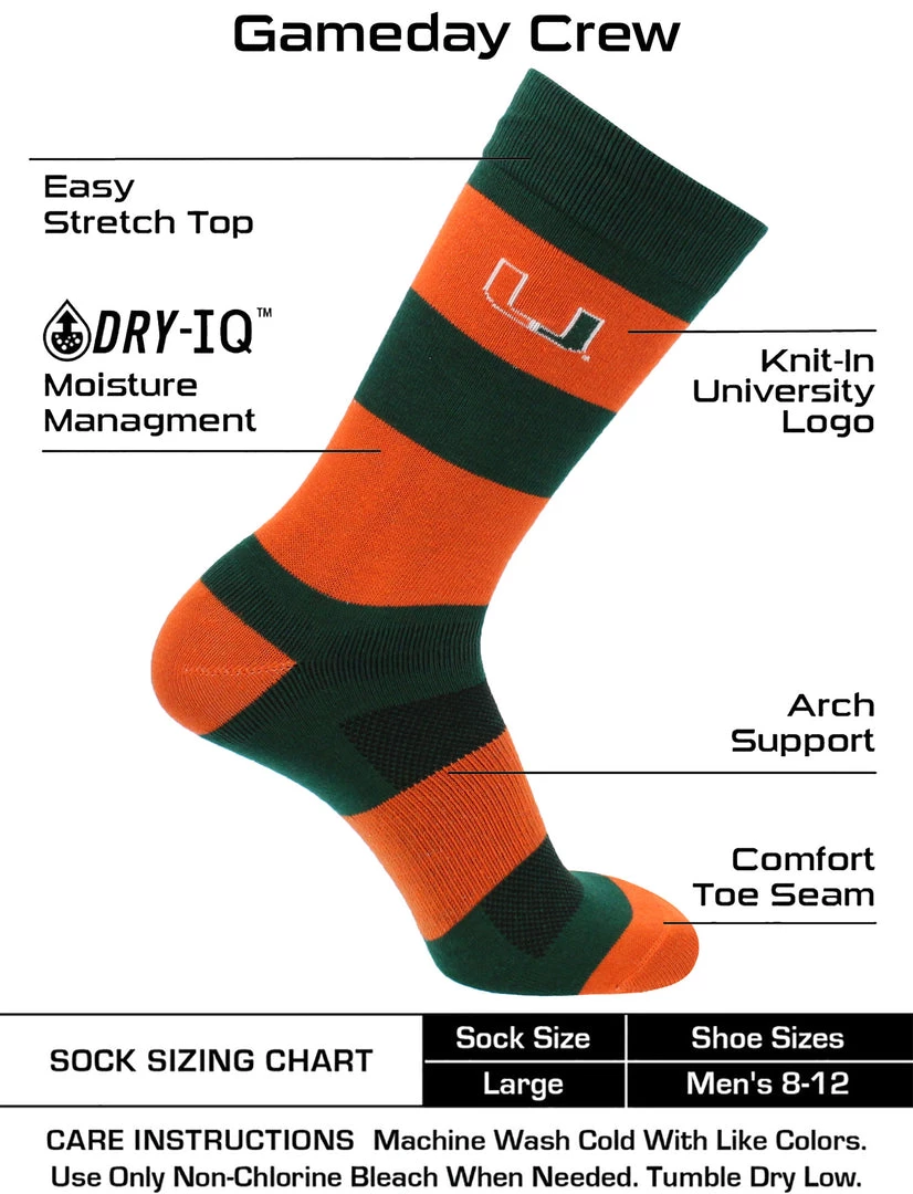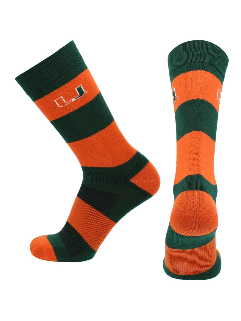 - COMFORT AND BREATHABILITY: These premium quality Miami Hurricanes striped dress socks provide soft comfort. Moisture management technology pulls moisture and sweat away from skin.