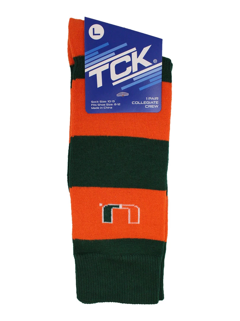 Show your school spirit in the office, at a wedding, at the football stadium or basketball game. Soft and durable, these socks let you maintain a professional look while you support your school. Offering comfort, breathability, performance, and durability these high quality University of Miami Hurricanes socks are an ideal gift for Father’s Day, birthdays, stocking stuffers or going back to school. TCK Game Day Striped Socks are made up of 97% Polyester, 3% Spandex. Go Canes!