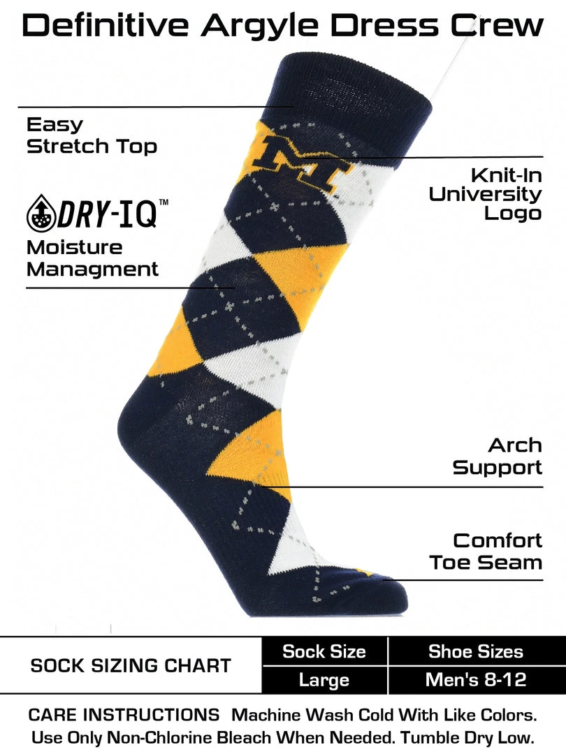 - COMFORT AND BREATHABILITY: These premium quality Michigan Wolverines argyle dress socks provide soft comfort. Moisture management technology pulls moisture and sweat away from skin.