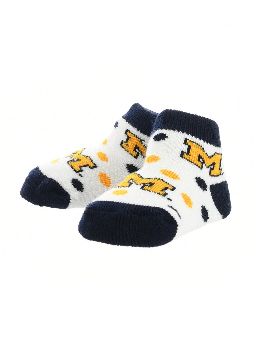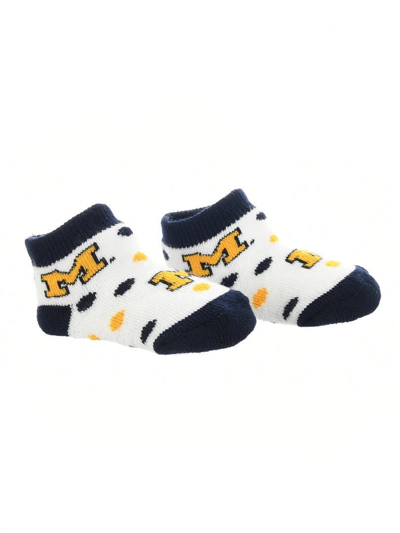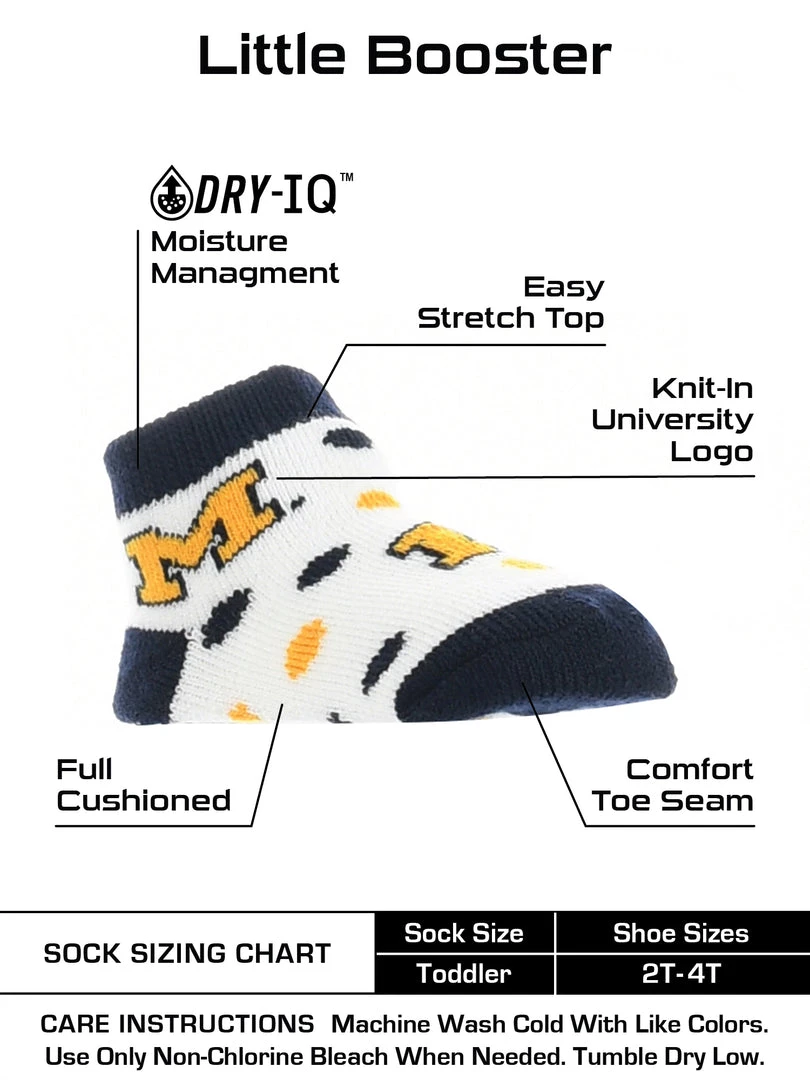 TCK Little Fan Low Cut Toddler Socks are soft and comfy. Get the little ones ready for gameday. If you are headed to the tailgate, game or cheering on the team from home, show off the school spirit! Offering an easy stretch top, soft comfortbale feel, and durability these high quality University of Michigan Wolverines socks are an ideal gift for birthdays, stocking stuffers or baby showers. Toddler Size 2T-4T. Made of 98% Polyester, 2% Spandex. Maize & Blue!