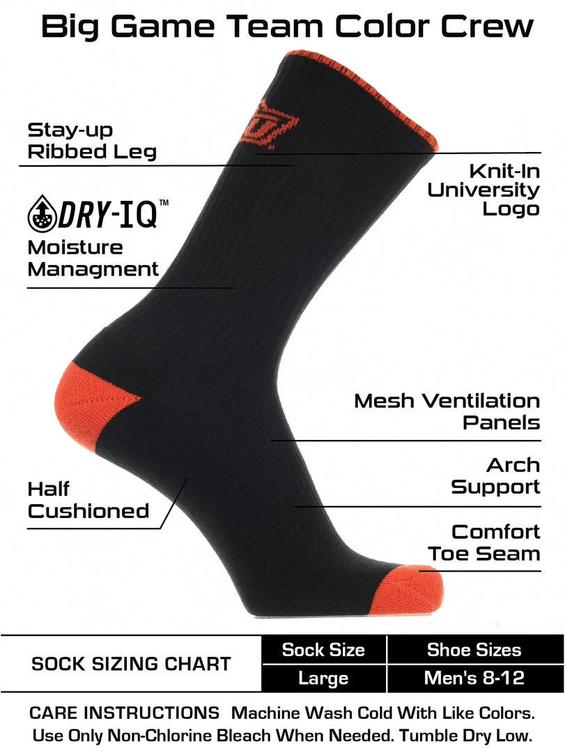 - COMFORT AND BREATHABILITY: These premium quality Oklahoma State socks provide soft comfort. Mesh panel ventillation above the foot allows for proper air flow. Moisture management technology pulls away moisture from skin, keeping your feet cool and dry.