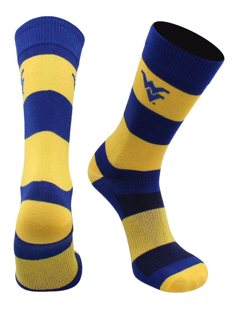 - COMFORT AND BREATHABILITY: These premium quality West Virginia Mountaineers striped dress socks provide soft comfort. Moisture management technology pulls moisture and sweat away from skin.