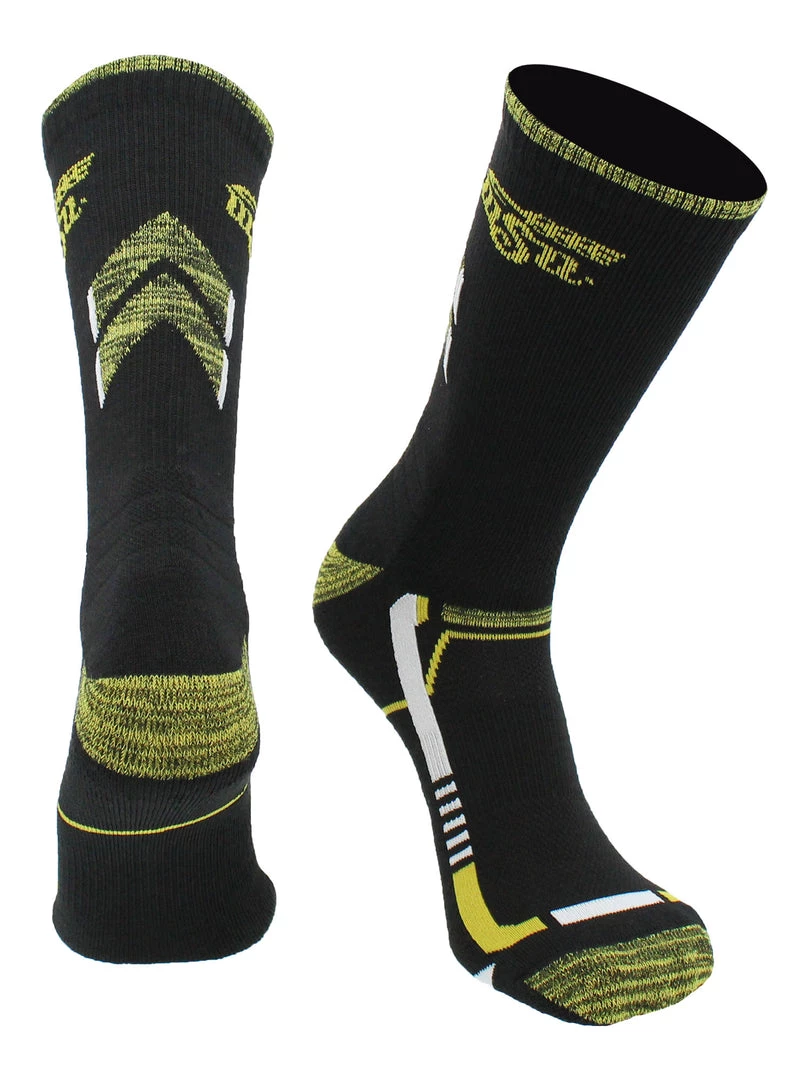 - HIGH PERFORMANCE DESIGN: Reinforced yarn and padding in the heel and toe areas provides cushioning, shock absorption, and improve durability. Arch compression enhances comfort. Ribbed stay up leg design ensures the sock stays up and doesn’t slide down.