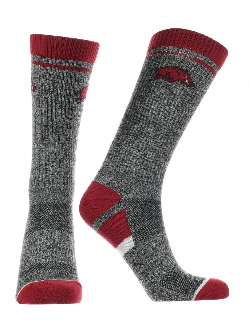 - GREAT GIFT IDEA: These Officially Licensed NCAA University of Arkansas Razorbacks Socks are a great stocking stuffer or gift for your favorite Hogs fan. They can be worn in the office, at the tailgate, and even on the field. Show your spirit. Wooo Pig Sooie!!