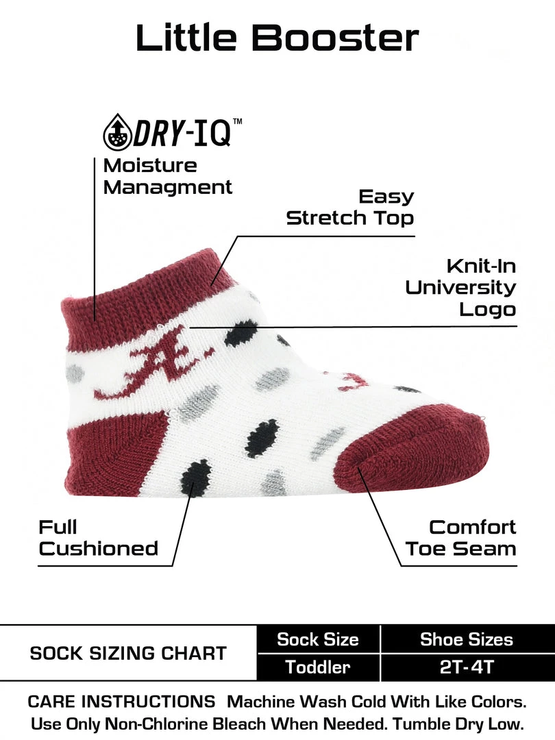 TCK Little Fan Low Cut Toddler Socks are soft and comfy. Get the little ones ready for gameday. If you are headed to the tailgate, game or cheering on the team from home, show off the school spirit! Offering an easy stretch top, soft comfortbale feel, and durability these high quality University of Arkansas Razorbacks socks are an ideal gift for birthdays, stocking stuffers or baby showers. Toddler Size 2T-4T. Made of 98% Polyester, 2% Spandex. Wooo Pig Sooie!