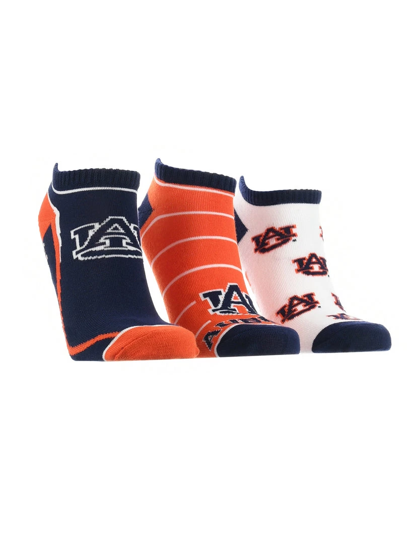 TCK Full Field, No Show Socks come with 3 pairs of comfy socks. Get ready to cheer on your favorite team during the season! Wear these to the tailgate party, working out, or lounge around the house. Offering comfort, breathability, and durability these high quality Auburn Tigers socks are an ideal gift for birthdays, stocking stuffers or going back to school. Made of 97% Polyester, 3% Spandex. Gear up for the big game! War Eagle!