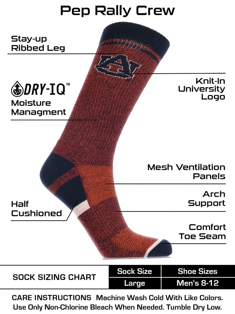 - COMFORT AND BREATHABILITY: These premium quality Auburn Tigers socks provide soft comfort. Mesh panel ventillation above the foot allows for proper air flow. Keeping the feet dry. Moisture management technology pulls away moisture from skin.