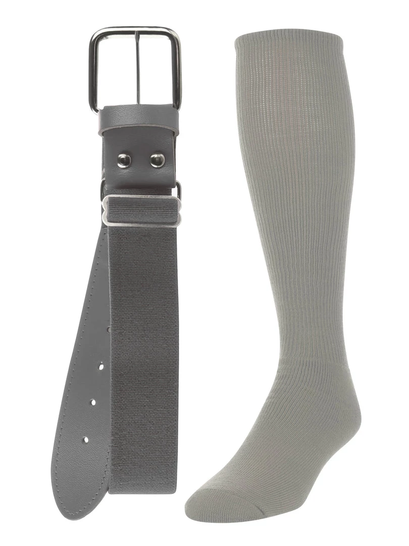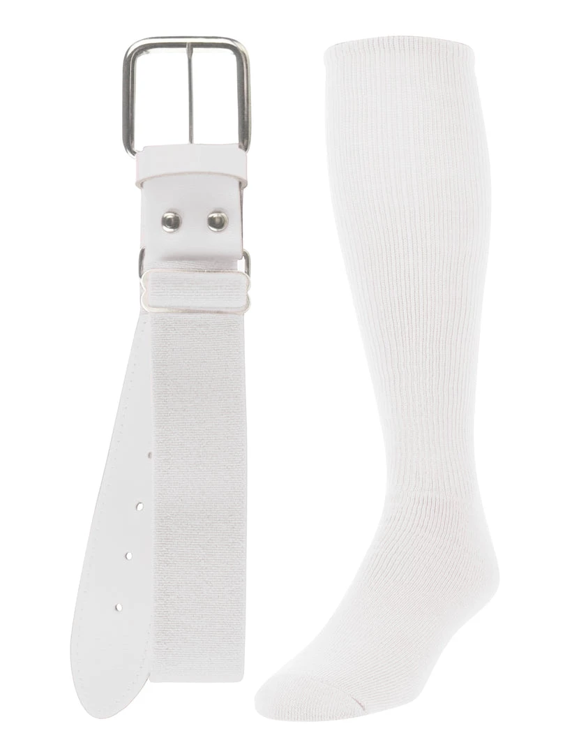 - BASEBALL SOCK/BELT COMBO SET: Our Baseball or Softball Sock/Belt combo includes 1 pair of solid colored athletic over the calf socks, and a perfectly coordinating elastic belt that is that can be easily adjusted to accommodate most waistlines.