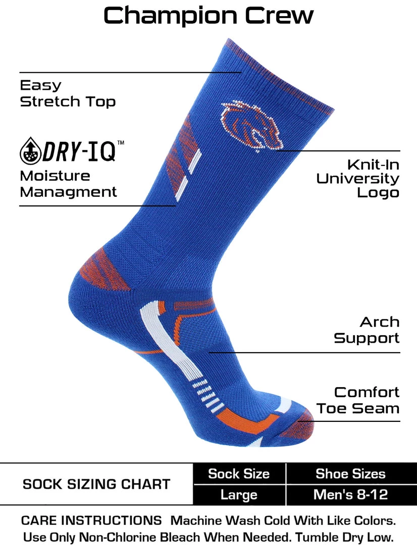 - COMFORT AND BREATHABILITY: These premium quality Boise State socks provide soft comfort. Mesh panel ventillation above the foot allows for proper air flow. Keeping the feet dry. Moisture management technology pulls away moisture from skin.
