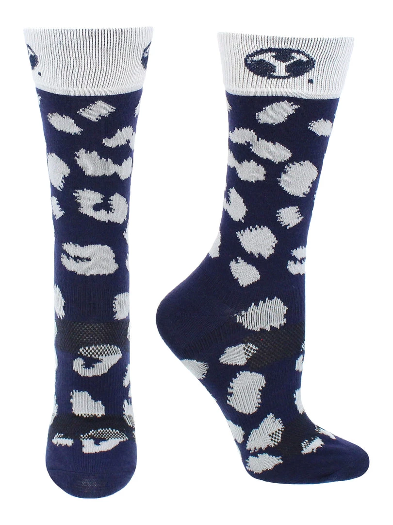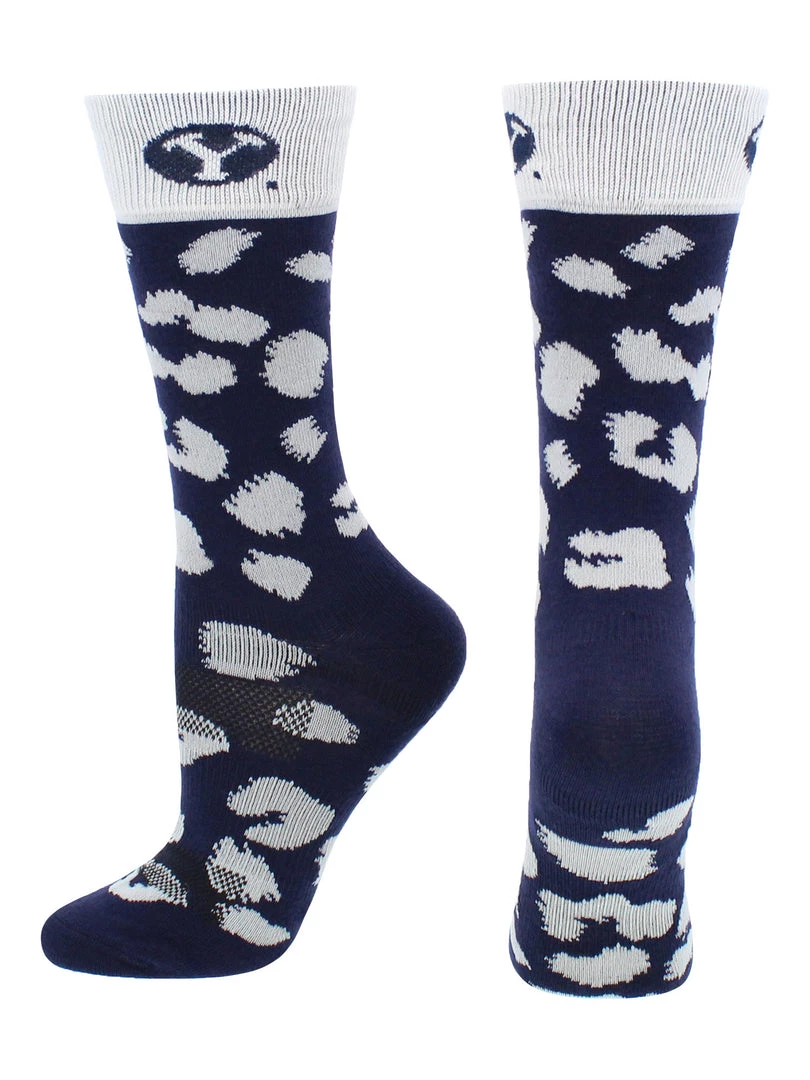 - COMFORT AND BREATHABILITY: These premium quality Brigham Young Cougars leopard print casual socks provide soft comfort. Moisture management technology pulls moisture and sweat away from skin.