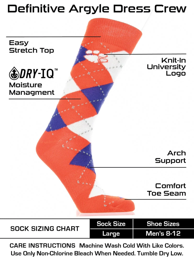 - COMFORT AND BREATHABILITY: These premium quality Clemson Tigers argyle dress socks provide soft comfort. Moisture management technology pulls moisture and sweat away from skin.