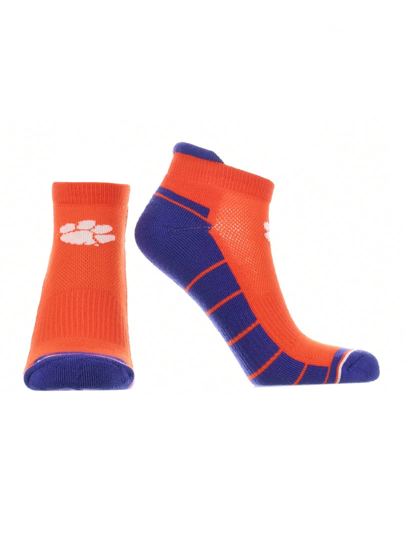 - COMFORT AND BREATHABILITY: These premium quality Clemson socks have a cushioned foot for all day comfort. Mesh panel ventillation above the foot allows for proper air flow. Moisture management technology pulls away moisture from skin, keeping your feet cool and dry.