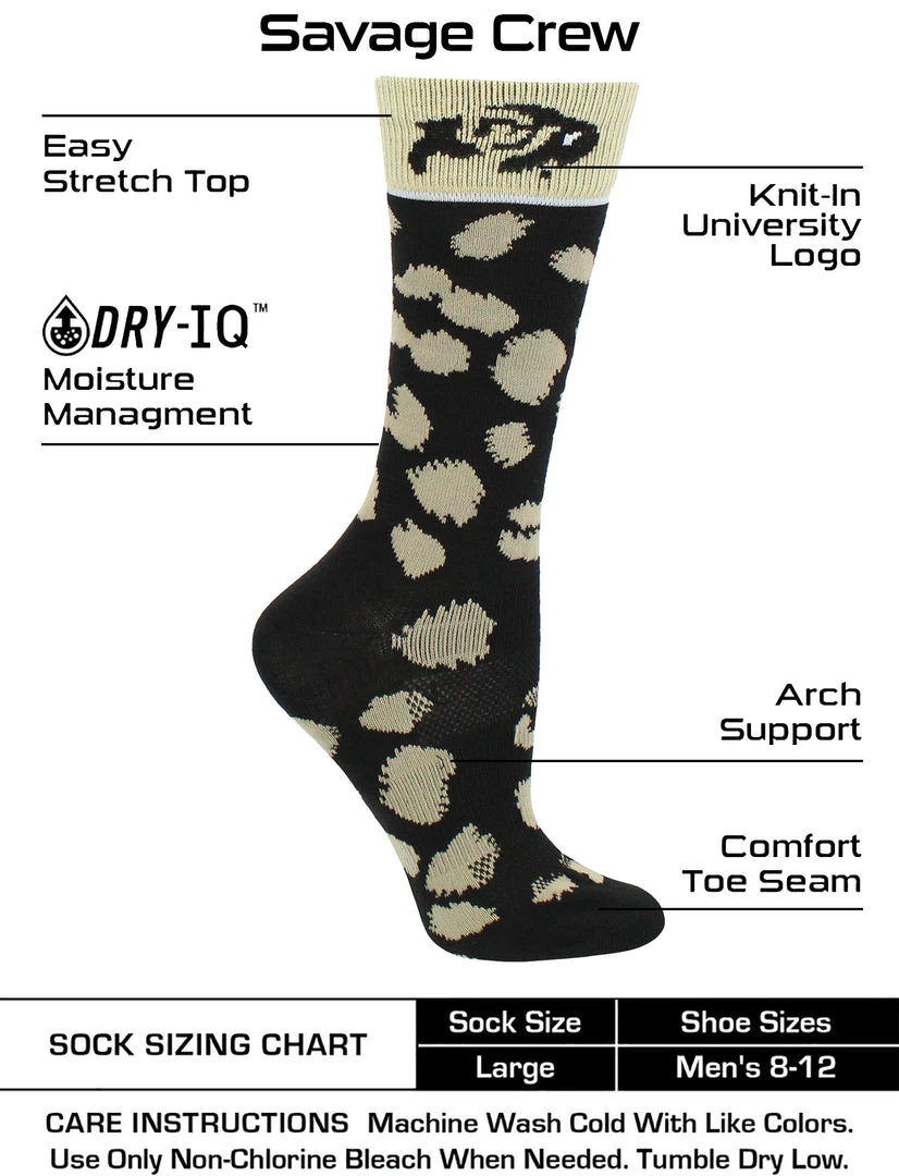 - COMFORT AND BREATHABILITY: These premium quality Colorado Buffaloes leopard print casual socks provide soft comfort. Moisture management technology pulls moisture and sweat away from skin.