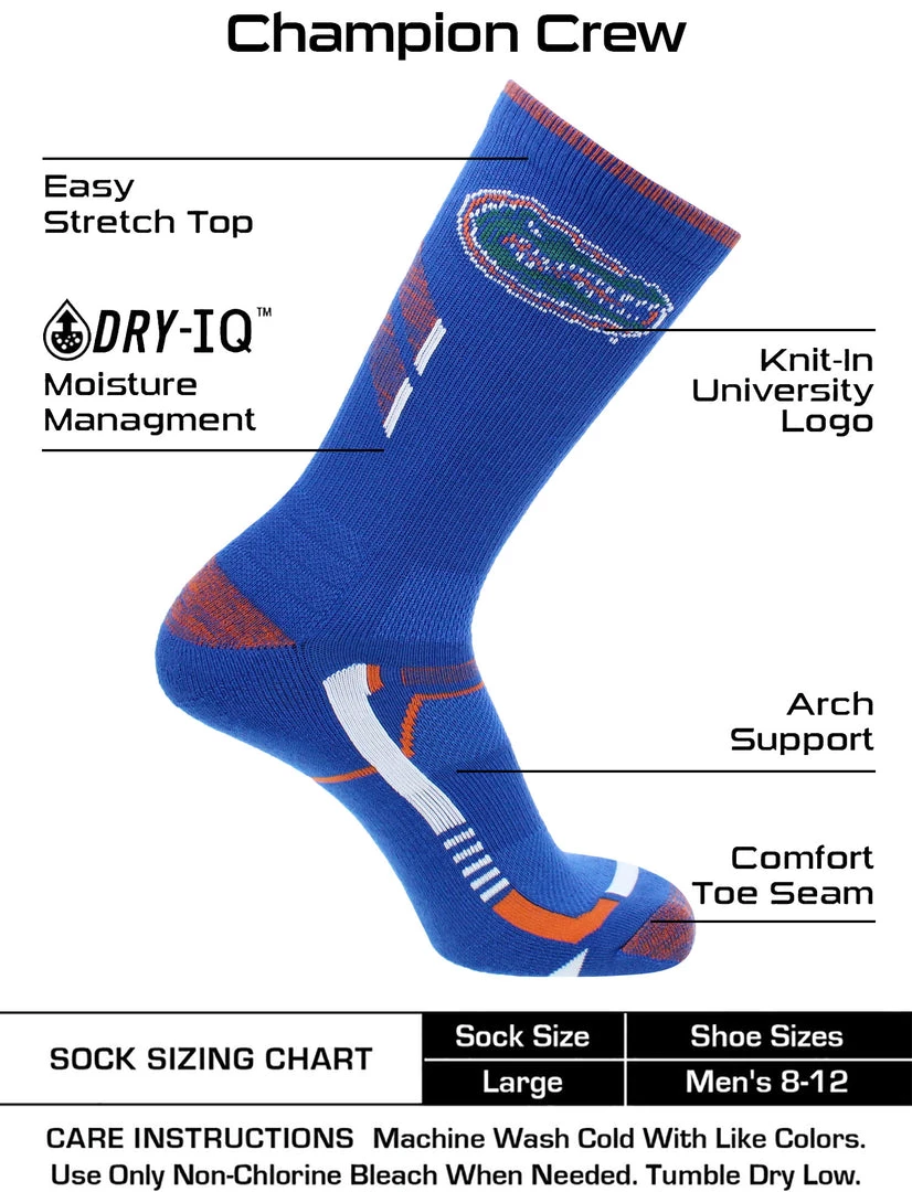 Wear your loud and proud school pride on your feet and be ready for even the most strenuous activities. Perfect with sneakers and slides, these socks let you be athletic ready while you support your school. Offering comfort, breathability, performance, and durability these high quality University of Florida Gators socks are an ideal gift for Father’s Day, birthdays, stocking stuffers or going back to school. Made of 94% Polyester, 4% Rubber, 2% Spandex. Go Gators!