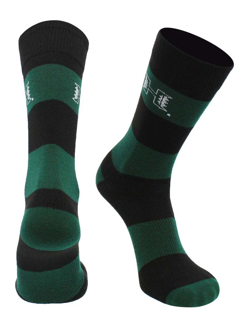 Show your school spirit in the office, at a wedding, at the football stadium or basketball game. Soft and durable, these socks let you maintain a professional look while you support your school. Offering comfort, breathability, performance, and durability these high quality University of Hawaii Rainbow Warriors socks are an ideal gift for Father’s Day, birthdays, stocking stuffers or going back to school. TCK Game Day Striped Socks are made up of 97% Polyester, 3% Spandex. Go Rainbow Warriors!