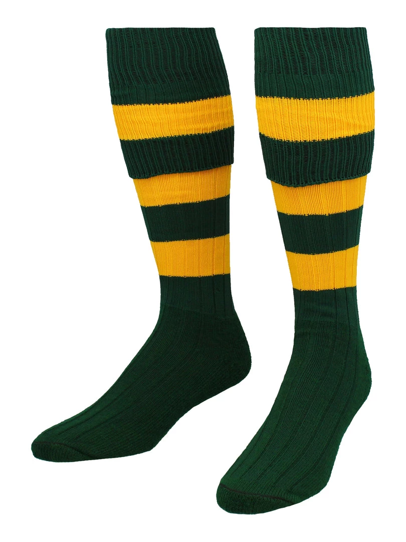 - DESIGNED FOR PERFORMANCE: These rugby/soccer/football socks feature a classic European rib knit. There is also a a fold down top to complete the look.