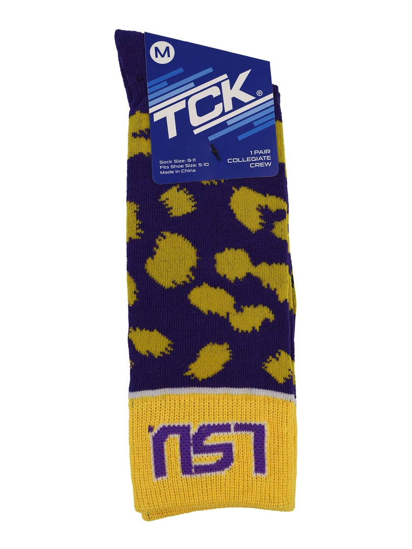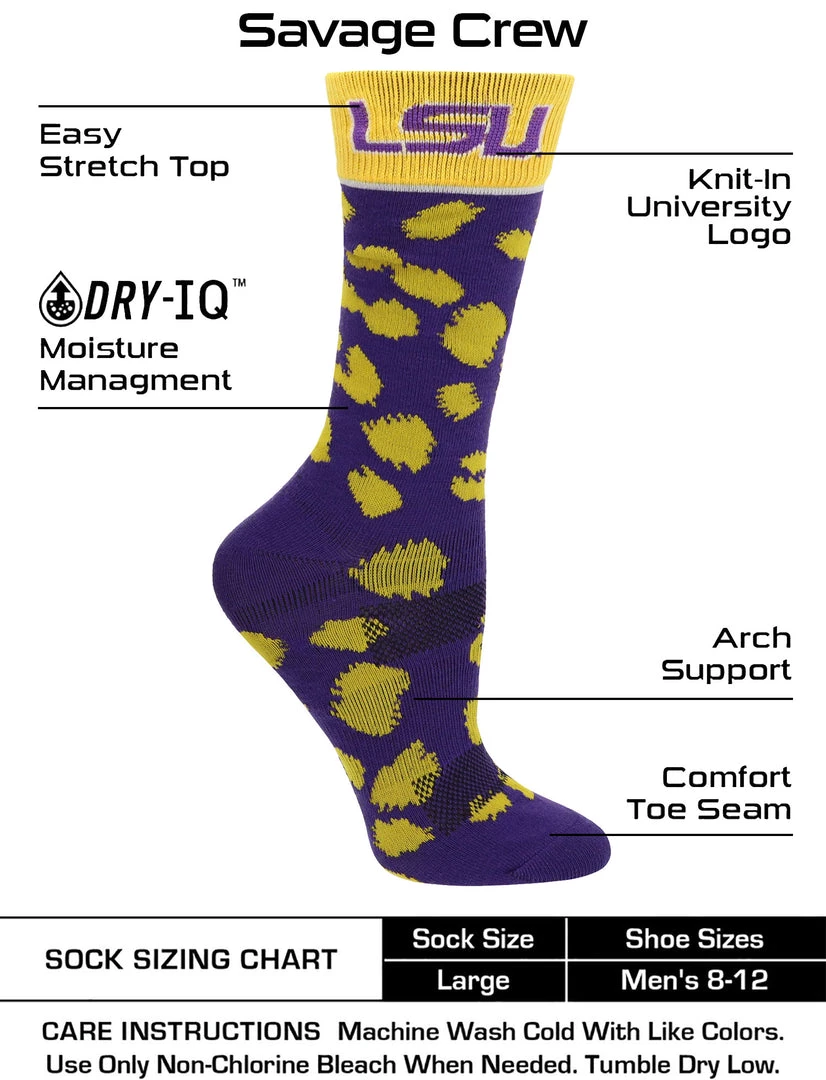 - COMFORT AND BREATHABILITY: These premium quality LSU Tigers leopard print casual socks provide soft comfort. Moisture management technology pulls moisture and sweat away from skin.