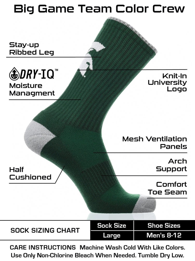 - COMFORT AND BREATHABILITY: These premium quality Michigan State socks provide soft comfort. Mesh panel ventillation above the foot allows for proper air flow. Moisture management technology pulls away moisture from skin, keeping your feet cool and dry.