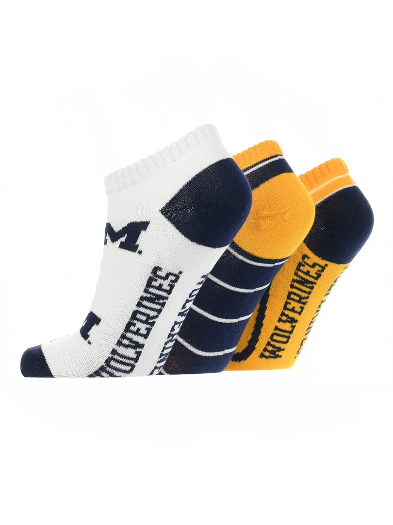 TCK Full Field, No Show Socks come with 3 pairs of comfy socks. Get ready to cheer on your favorite team during the season! Wear these to the tailgate party, working out, or lounge around the house.Offering comfort, breathability, and durability these high quality University of Michigan Wolverines socks are an ideal gift for birthdays, stocking stuffers or going back to school. Made of 97% Polyester, 3% Spandex. Gear up for the big game! Maize & Blue!