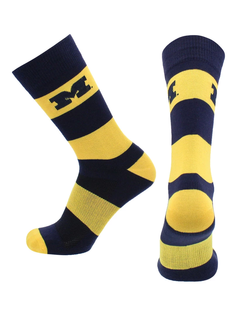 - COMFORT AND BREATHABILITY: These premium quality Michigan Wolverines striped dress socks provide soft comfort. Moisture management technology pulls moisture and sweat away from skin.