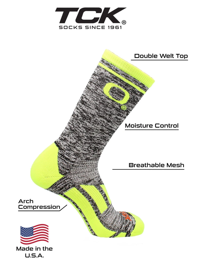 - COMFORT AND BREATHABILITY: These premium quality Oregon Socks provide soft comfort. Mesh panel ventillation above the foot allows for proper air flow. Keeping the feet dry. Moisture management technology pulls away moisture from skin.