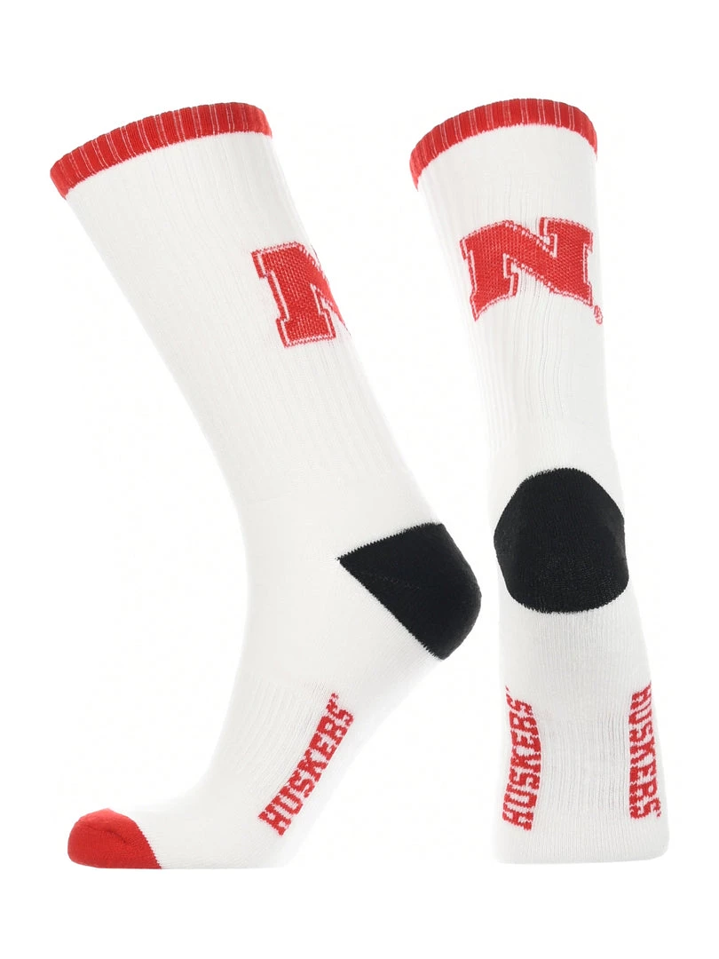 The Basic Crew White Socks offer timeless design, superior comfort all while showing your school pride. Perfect with sneakers and slides or even lace-ups and loafers, these socks bring versatility to your wardrobe no matter what the occasion. These high quality University of Nebraska Cornhuskers socks are an ideal gift for Father’s Day, birthdays, stocking stuffers or going back to school. TCK Everyday Classic White Socks are made up of 94% Polyester, 4% Rubber, 2% Spandex. Go Huskers!