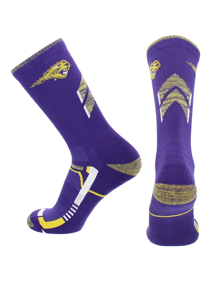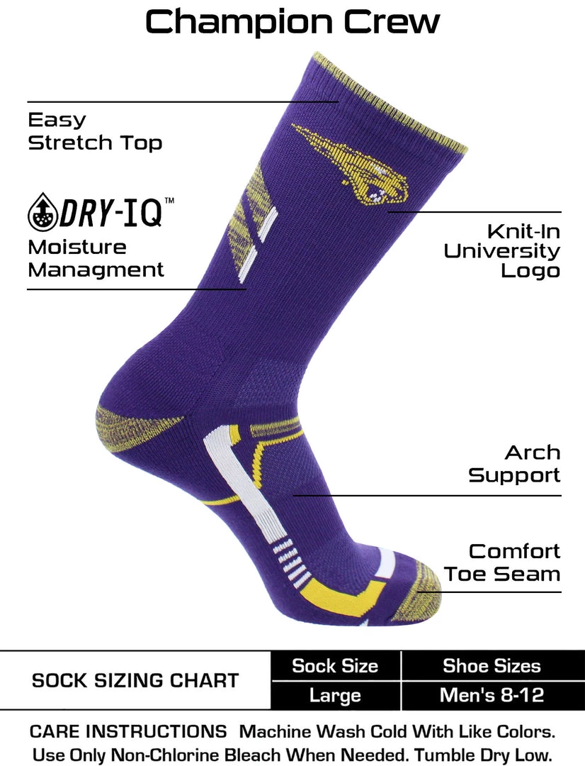 Wear your loud and proud school pride on your feet and be ready for even the most strenuous activities. Perfect with sneakers and slides, these socks let you be athletic ready while you support your school. Offering comfort, breathability, performance, and durability these high quality University of Northern Iowa Panthers socks are an ideal gift for Father’s Day, birthdays, stocking stuffers or going back to school. Made of 94% Polyester, 4% Rubber, 2% Spandex. Go Panthers!