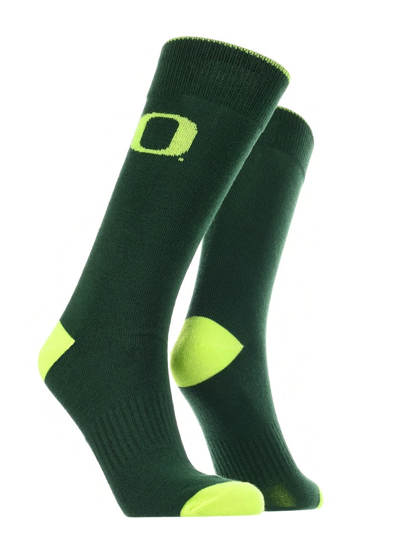 TCK Dean’s List crew length dress socks feature a smooth flat-knit fabric and classic team color styling. Perfect for lace-ups or loafers, these socks let you maintain a professional look while you support your school. Offering softness, comfort, and durability these high quality University of Oregon Ducks socks are an ideal gift for Father’s Day, birthdays, stocking stuffers or going back to school. Made up of 97% Polyester, 3% Spandex. Go Ducks!